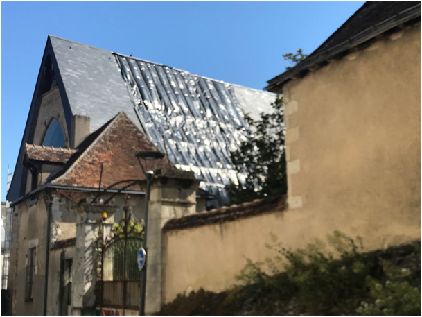Le bâtiment a beaucoup souffert de cette interruption des travaux depuis de nombreuses années et les bâchages provisoires de toiture précédemment posés n’assurent plus désormais la réelle protection des charpentes anciennes avec le reste de leur lambrissage d’origine.