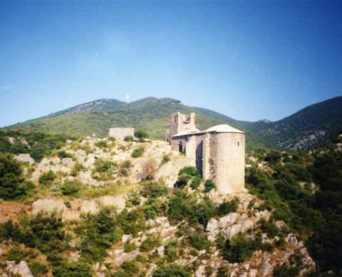 La chapelle Notre-Dame de la Roque appartient à l’ensemble castral dominant le village de Cabrerolles. Un donjon et quelques pans de murailles, vestiges d’une enceinte, attestent la fonction militaire de ce site d’éperon barré. La chapelle romane à laquelle on accède par le sud est située au point le plus élevé du promontoire, à l’angle nord-est de l’enceinte castrale à laquelle elle est intégrée. Il s’agit d’un simple vaisseau rectangulaire précédé à l’ouest par un clocher quadrangulaire et terminé à l’est par une abside semi-circulaire. L’édifice n’est cependant pas homogène, comme le montre l’observation des parements. Les murs goutterots nord et sud portent la trace d’une première construction rectangulaire de 5,8 m sur 12 m, correspondant à la moitié occidentale de la nef. Cet édifice, sans douce à usage militaire, était en très faible saillie par rapport au mur d’enceinte est ; au nord, le rempart a été construit dans le prolongement du mur goutterot. Les murs ouest et nord de cet édifice sont conservés ; la partie centrale du mur sud appartient à ce premier bâtiment. La moitié orientale de la chapelle est le produit d’une seconde campagne de travaux, débordant largement le cadre de l’enceinte. Cette partie est édifiée sur le flanc du rocher qui présente une forte dénivelée. Endommagée par les protestants, l’abside a fait l’objet de restaurations au XVIème s. L’intérieur de cet édifice est d’une grande simplicité. L’abside, couverte d’une voûte en cul-de-four, est éclairée par une fenêtre axiale à ébrasement simple. Fente de jour rectangulaire à l’extérieur, elle s’ouvre en plein cintre vers l’intérieur. La nef, légèrement plus large, est couverte d’un berceau en plein cintre scandé de deux doubleaux ; elle est éclairée par une petite baie au nord, et par trois autres au sud, du même type que la baie du chevet. De la porte d’accès ouverte dans le mur sud, il ne reste que les jambages intérieurs. Le clocher est la partie la plus récente. Sa face orientale est posée sur le mur de la nef, et au nord il s’appuie contre le rempart. Les grandes fenêtres couvertes d’un arc surbaissé percées en son sommet appartiennent à l’époque moderne. L’accès à cette tour s’effectue par un trou ouvert dans le mur ouest de la nef. La chapelle Notre-Dame de la Roque, abandonnée depuis de nombreuses décennies, offrait un spectacle désolant : voûtes en partie effondrées, couverture disparue, clocher éventré. La municipalité de Cabrerolles, l’association de Sauvegarde du Patrimoine des Hauts Cantons et Maisons Paysannes de France ont entrepris de sauver cet édifice de la ruine par la restauration de toutes les maçonneries et la consolidation des voûtes. La Sauvegarde de l’Art Français a accordé une aide de 100 000 F en 1993 et 70 000 F en 1994.