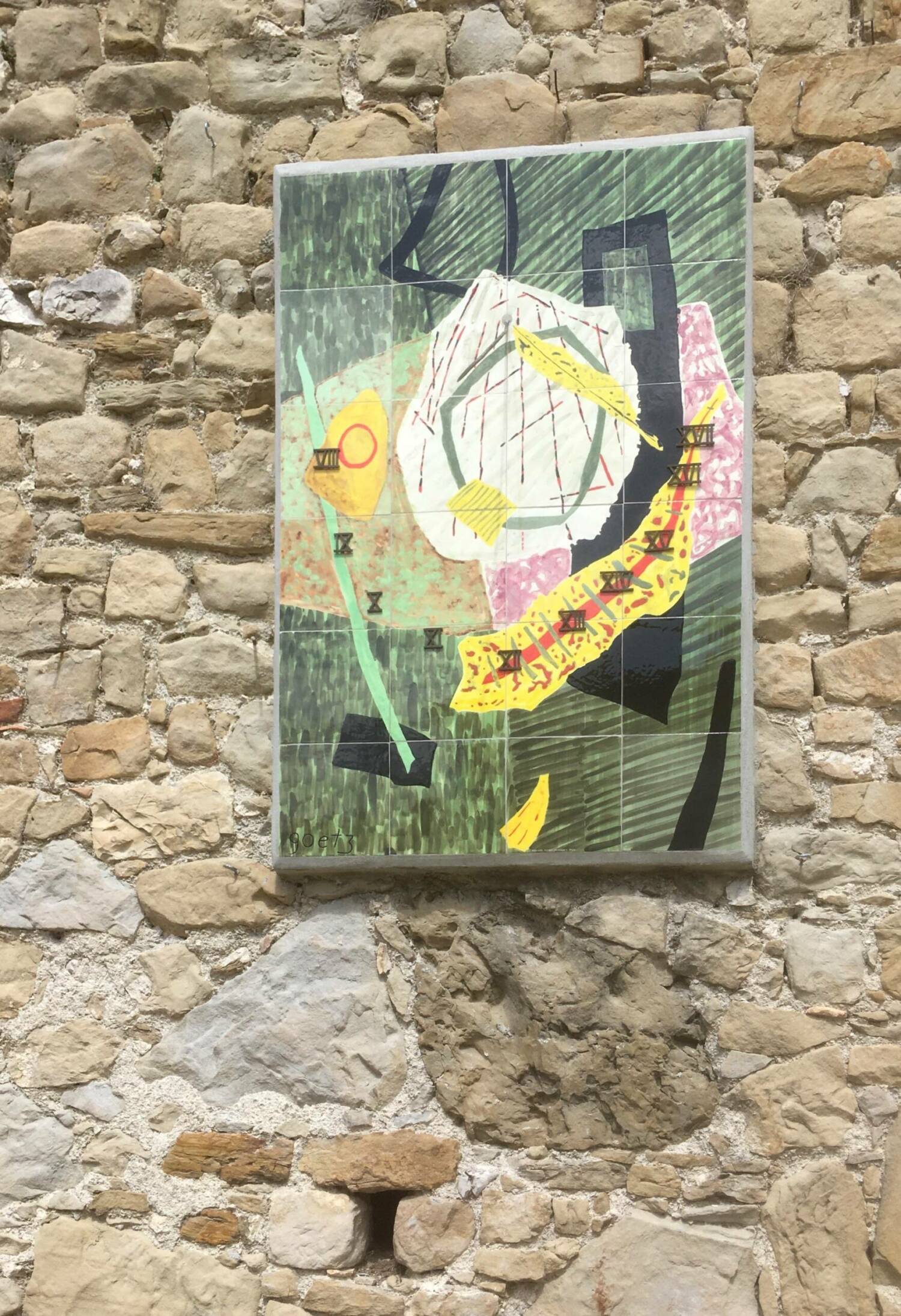 Situé dans un petit village à 40 minutes de Nice, Coaraze, ce cadran solaire en céramique a été réalisé en 1961 par Henri Goetz, un artiste illustrateur d’origine américaine.