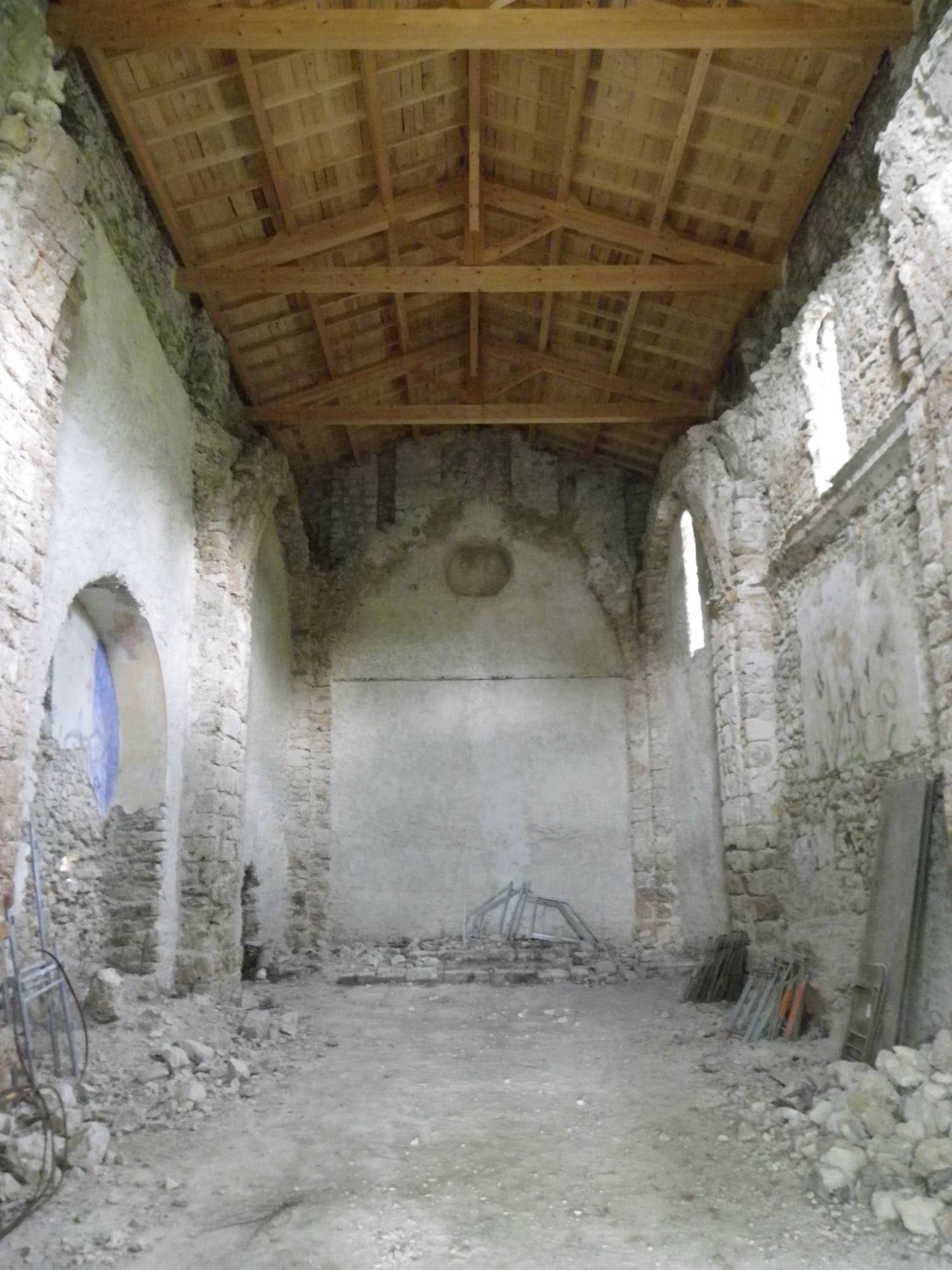 Cette église romane est de plan rectangulaire, avec trois travées voûtées d’arrêtes à l’origine, délimitées par des piliers postérieurs à la construction d’origine adossés aux murs gouttereaux. Elle ne dispose d’aucun décor sculpté mis à part la corniche moulurée à l’intérieur de l’édifice. Elle est couverte d’une toiture à deux pentes, en tuiles canal. Le sol en carrelage ancien a été déposé et mis en conservation.