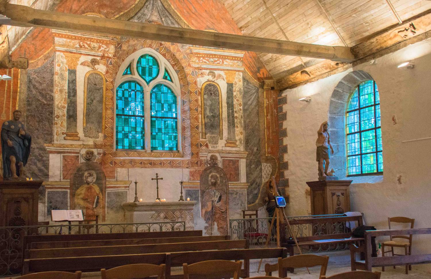 En dépit de son incontestable valeur, tant pour son esthétique que du point de vue de l’histoire régionale, cet héritage coutumier, inscrit au titre des monuments historiques, nécessitait une restauration urgente. Les usures des menuiseries et les salissures menaçaient en effet tout autant la carnation des décors que la structure même de l’objet.
