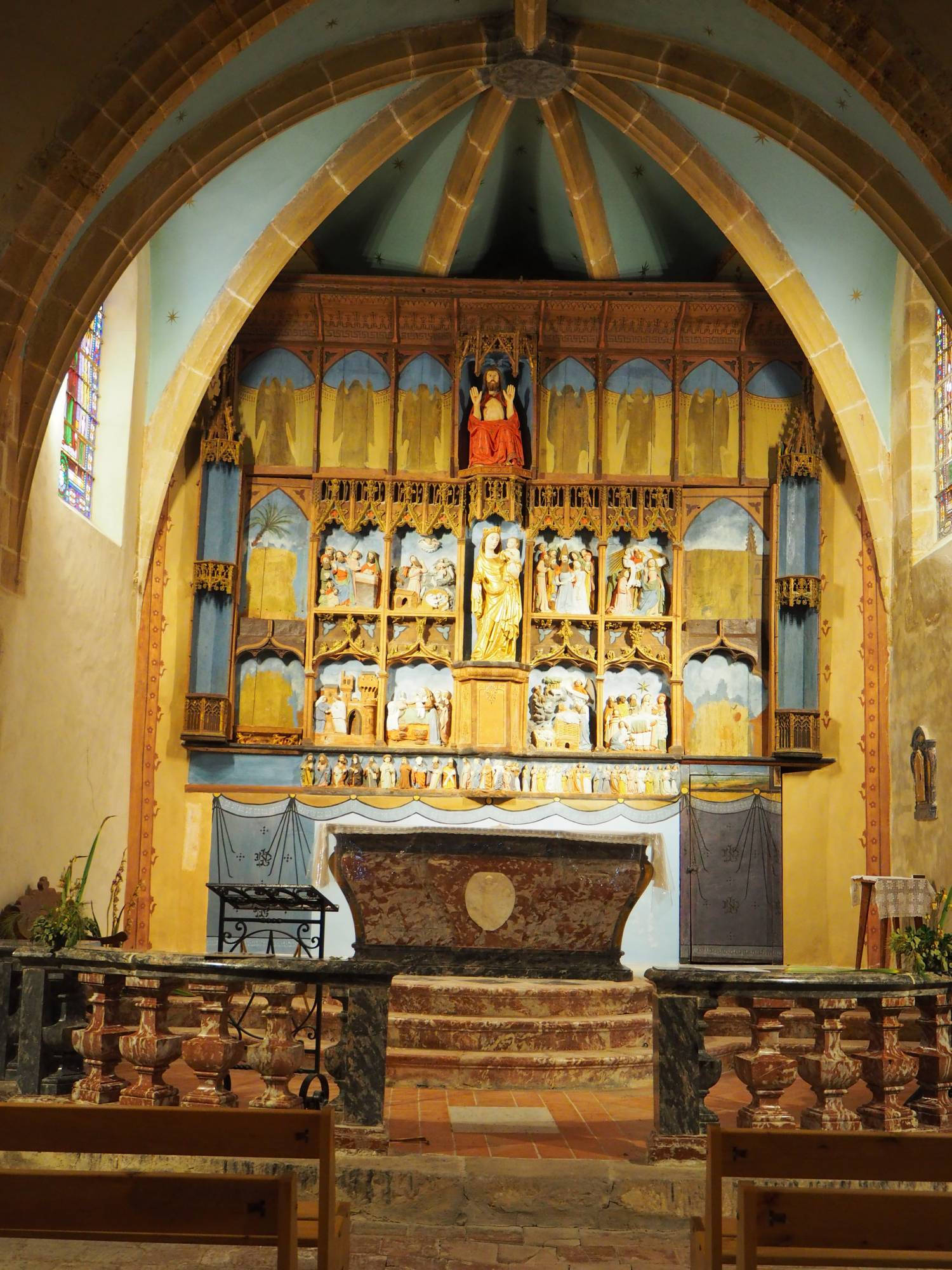 L’autel et le tabernacle sont en marbre de Caunes.