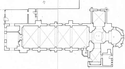 Cette nef, à l’origine couverte de charpente, a été profondément altérée au XIXe s. par la suppression des tirants et entraits du XVIe et la construction de voûtes de style gothique en brique et plâtre, qui ont entraîné la création de quatre travées séparées par des piles à l’intérieur, des contreforts à l’extérieur, et les percements de nouvelles fenêtres à double ébrasement de style roman. Quelques éléments du lambris subsistent au-dessus des voûtes sous la charpente. C’est donc l’aspect d’une nef du XIXe s. qui désormais s’impose.