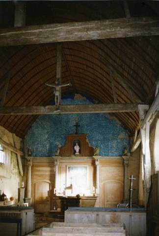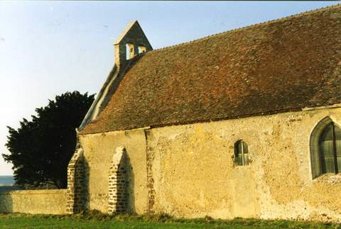 L’église de Cernay est un petit édifice rectangulaire qui se dresse au milieu de son cimetière parmi les champs avoisinants. Elle se compose d’une nef unique dont le chœur a été rasé à une époque indéterminée et remplacé par une sacristie accolée à l’est. Une petite fenêtre en plein cintre, sur la façade sud, pourrait attester une ancienne origine romane, bien qu’elle soit peu ébrasée et assez large. Les autres ouvertures en arc brisé sont vraisemblablement postérieures. La voûte du vaisseau est en berceau brisé et faite de bois. La charpente, indépendante de la maçonnerie, laisse apparaître les entraits et repose sur une série de poteaux. Les traces nombreuses de mortaises sur les poutres longitudinales appuient l’hypothèse de la réutilisation d’une charpente de grange, sans douce après l’incendie de la charpente primitive. La partie la plus attachante de chœur avant restauration, est sans nul doute le pignon ouest surmonté d’un clocher peigne percé de deux ouvertures en plein cintré, forme architecturale dont on ne connaît que crois ou quatre exemples dans le département de l’Eure-et-Loir. On pénètre dans l’édifice par un portail dont la structure en anse de panier est entourée d’un rore. Des contreforts à glacis confortent l’ensemble et sont doublés aux angles du clocher-mur. À l’intérieur, une poutre de gloire sépare la partie réservée au chœur du reste du vaisseau ; les objets mobiliers et les autels semblent faire partie des transformations faites au XIXème s. Une première campagne de travaux concernant la réfection des maçonneries extérieures a été soutenue par la Sauvegarde de l’Art Français par l’apport d’une contribution de 25 000 F en 1993. Pour conserver son originalité au voûtement, une seconde campagne a été entreprise afin de restaurer la charpente, opération à laquelle la Sauvegarde de l’Art Français a contribué pour une somme de 100 000 F en 1993 également.
