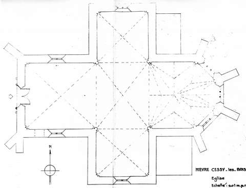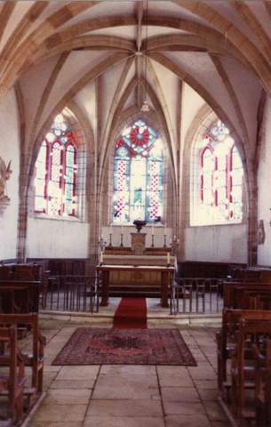 L’édifice très homogène de la première moitié du xvie s. comporte une nef d’une seule travée, un transept, un chœur à chevet polygonal, le tout voûté sur de simples croisées d’ogives à l’exception des six ogives du sanctuaire accompagnées de liernes et tiercerons qui font au-dessus du chœur un élégant réseau d’arcs à la fine modénature. Un style gothique flamboyant très épuré règne partout, aucun chapiteau ne vient interrompre la courbe des arcs, les fenestrages restent d’une sobriété extrême (à l’exception des trois fenêtres du chevet dont le dessin évoque le xive s. et il faut craindre quelque reprise malencontreuse). La porte principale ne fait aucune concession à la mode Renaissance, seule une niche intérieure avec ses pilastres et son fronton orné d’une coquille trahit l’esprit nouveau. Tous les enduits intérieurs ont été refaits faisant disparaître dès avant 1950 des peintures anciennes de facture assez populaire signalées au xixe s.