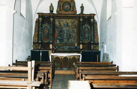 Au bord de l’ancienne route reliant Chamonix au village des Bossons, la chapelle des Montquarts est un bon exemple de ces oratoires que la piété populaire a multiplié au xviiie s. dans les régions alpestres.De plan rectangulaire, légèrement trapézoïdal même, la longueur de l’édifice est de 12,90 m. Son toit débordant en tuiles de sapin est surmonté, au-dessus de la façade, d’un joli campanile.Cette façade, très simple, est percée d’une porte et de deux fenêtres en plein cintre.Le grand retable, certainement exécuté pour la chapelle au moment de sa construction (on indique la date du 15 août 1695) présente en son centre saint Pierre entre saint Blaise et saint Donat, sainte Agate et saint Nicolas.La Sauvegarde de l’Art français a participé aux travaux de mise hors d’eau pour 10 000 F versés en 1988