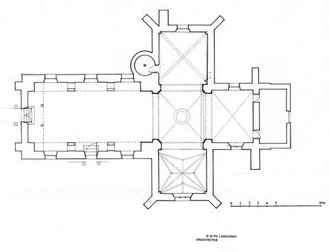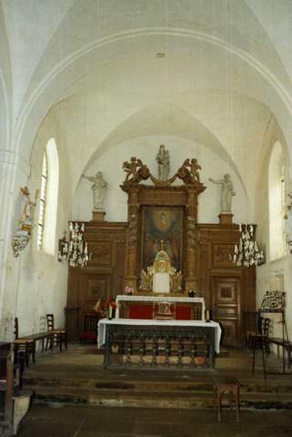 La cure de Channes est mentionnée depuis 1191 mais, en l’absence de renseignements sur la construction de l’église de la Nativité de la Vierge, seule son architecture peut nous fournir des indications. Le transept assez saillant doit remonter au XVIème siècle. Le bras nord, voûté d’ogives à nervures simples peut être un peu plus ancien que le bras sud qui présente une voûte à liernes et tiercerons, des clés historiées et un remplage flamboyant dans sa fenêtre sud. La croisée, qui supporte le clocher reconstruit en 1868, est couverte d’une voûte d’arête comme le chœur à chevet plat. Dans son rapport, M. Lamourère, architecte des Bâtiments de France, signale dans ce chœur des départs d’arcs témoignant d’un voûtement antérieur différent. Trois retables en bois du XVIIème s. sont conservés dans le chœur et les bras du transept. A l’extérieur, le contrefort sud-est présence une jolie niche de style Renaissance qui abrite une sculpture en pierre de sainte Anne et la Vierge. Les autres parties de l’église datent du XIXème siècle. Après des travaux de restauration mentionnés en 1807 et 1822, le clocher fut rebâti en 1848, le porche en 1868. La nef, qui avait été élargie « de trois pied s de chaque côté » en 1779, a été entièrement reconstruite en 1891. La sacristie, adossée à l’est du chevet, date également du XIXème siècle. Pour alléger la charge que représentaient les travaux d’assainissement, la Sauvegarde de l’Art Français a donné 20 000 F en 1995, destinés exclusivement aux réfections intérieures du transept et du chœur.
