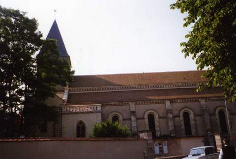 L’église Saint-Martin, aujourd’hui paroissiale, fut construite à la fin du XIème s. pour un prieuré de l’ordre de Cluny. Longue de 38 m, elle présente un plan en croix latine. Le chevet est composé d’une abside, éclairée par trois fenêtres en plein cintre, et de deux absidioles, dotées chacune d’une petite fenêtre, coutes trois voûtées en cul-de-four. La croisée du transept est couverte d’une coupole sur trompes portée par quatre arcs en plein cintre dont les doubleaux retombent sur des pilastres à impostes. Au-dessus, s’élève un clocher carré percé sur chaque face d’une baie géminée qui daterait du XIVème s. Les bras du transept sont voûtés en berceau. La nef et les bas-côtés ont été reconstruits au XIXème s., de même que la façade dans laquelle on a rétabli la disposition ancienne du porche à double rouleau surmonté d’une haute arcature. La Sauvegarde de l’Art Français a accordé en 1993 une aide de 30 000 F pour la réfection extérieure du chevet et du transept .