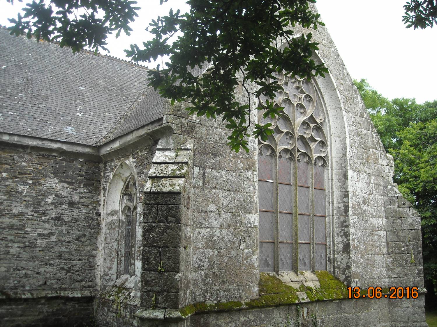 La chapelle a été détruite pendant les guerres de succession de Bretagne et reconstruite en 1392 et 1640. Incendiée en 1873, elle fut reconstruite la même année. L’édifice actuel, en forme de croix latine, comprend un clocher-mur avec arc de décharge bandé entre de puissants contreforts.