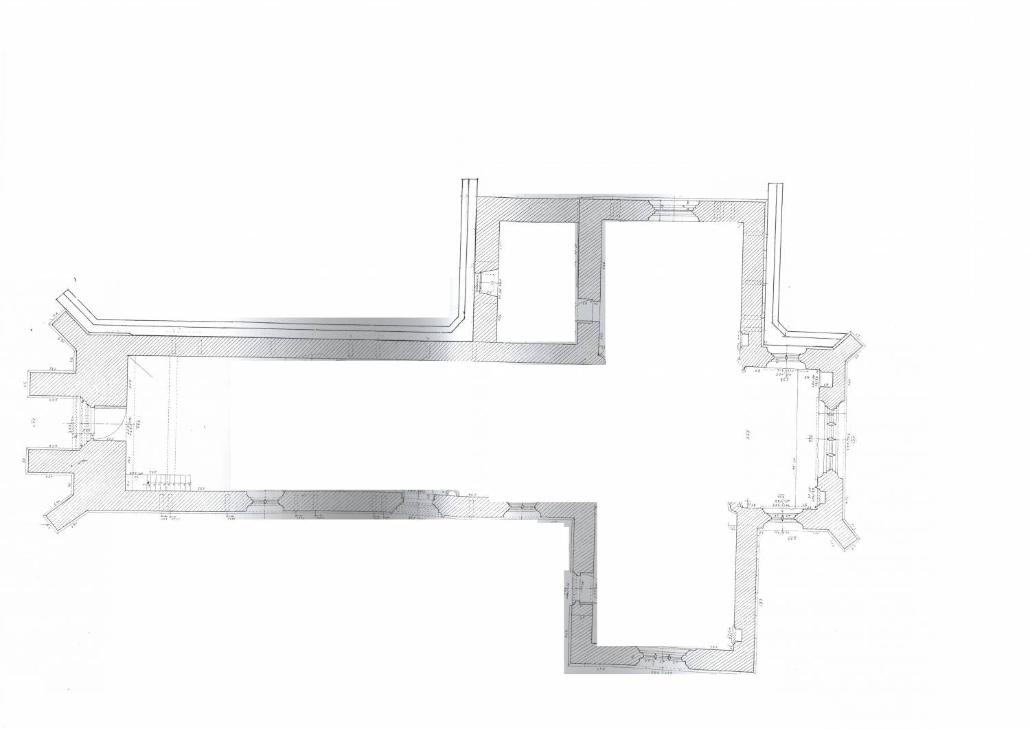 Grande chapelle construite sur un plan en croix latine avec un clocher-mur.