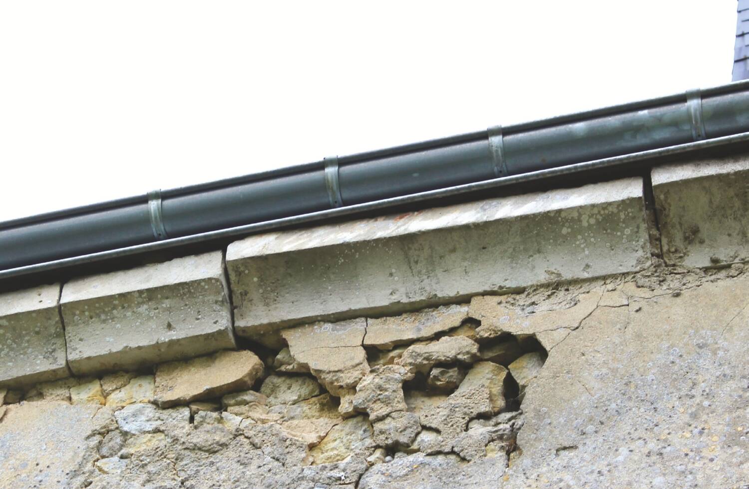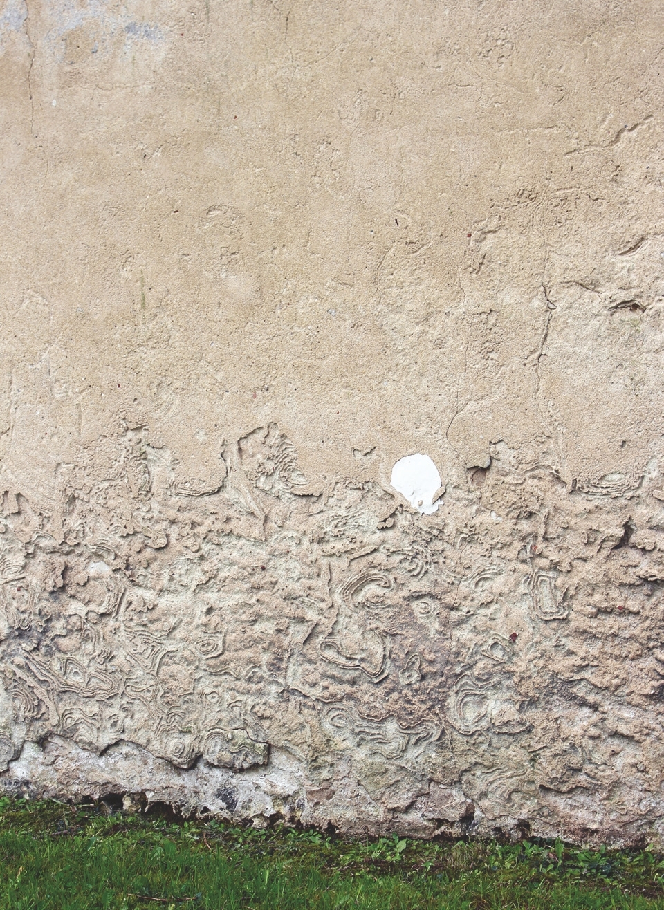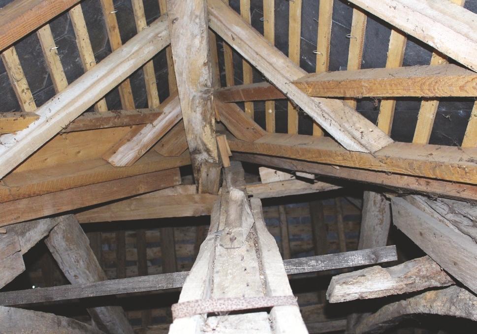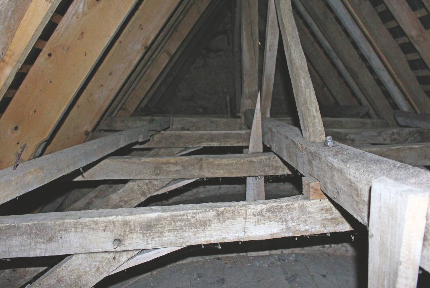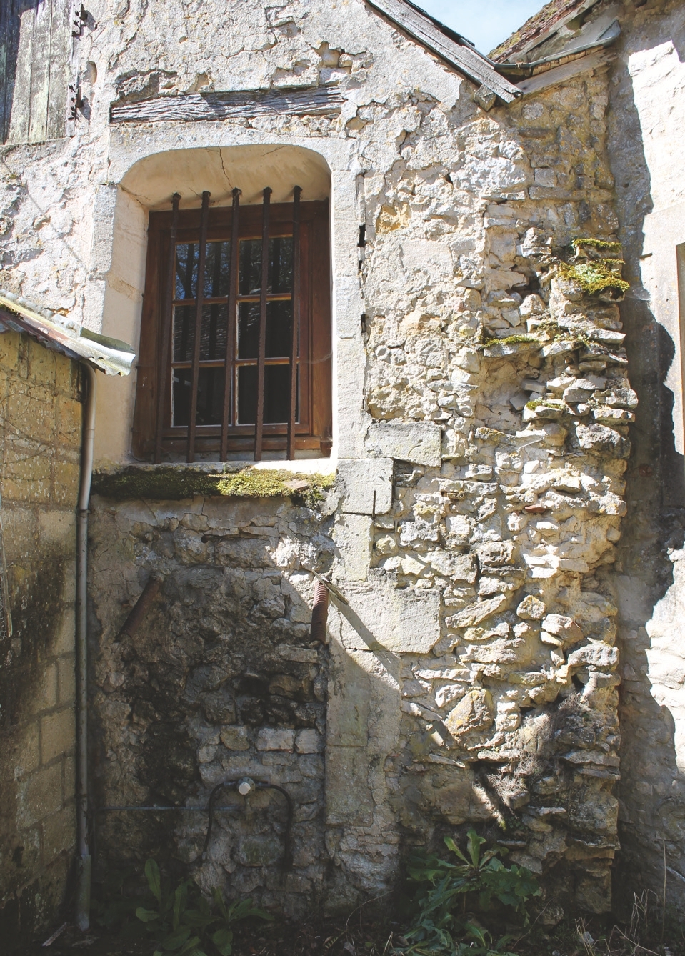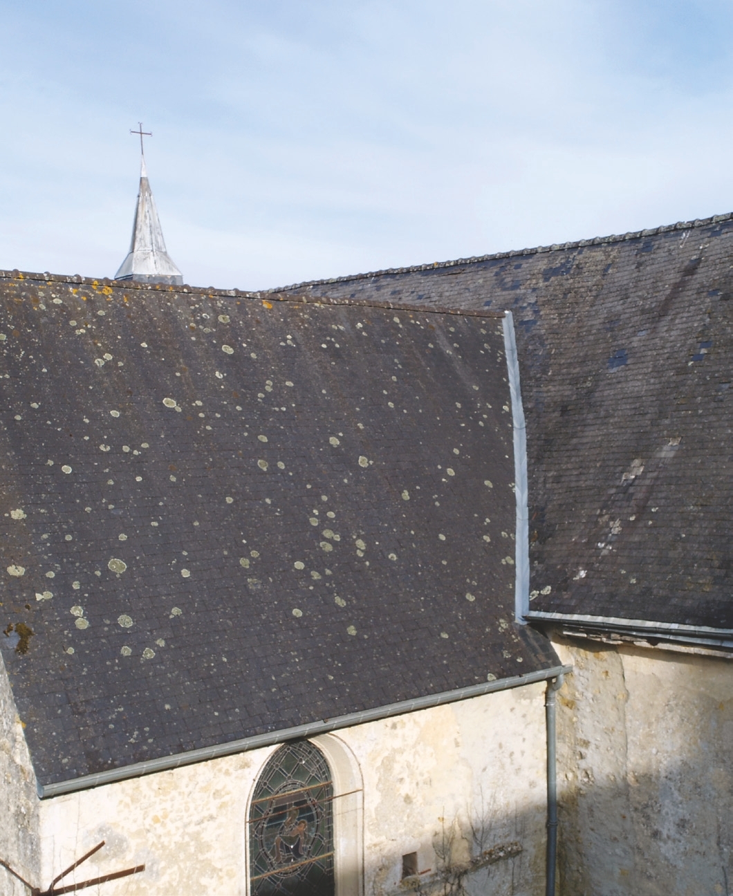 En façade occidentale, la trace d’un gable (ancienne rive de couverture) indique qu’un porche (ou ballet) précédait le portail