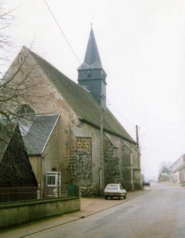 Sur le comble de la nef s’élève la flèche octogonale du clocher, en bois recouvert d’ardoises.