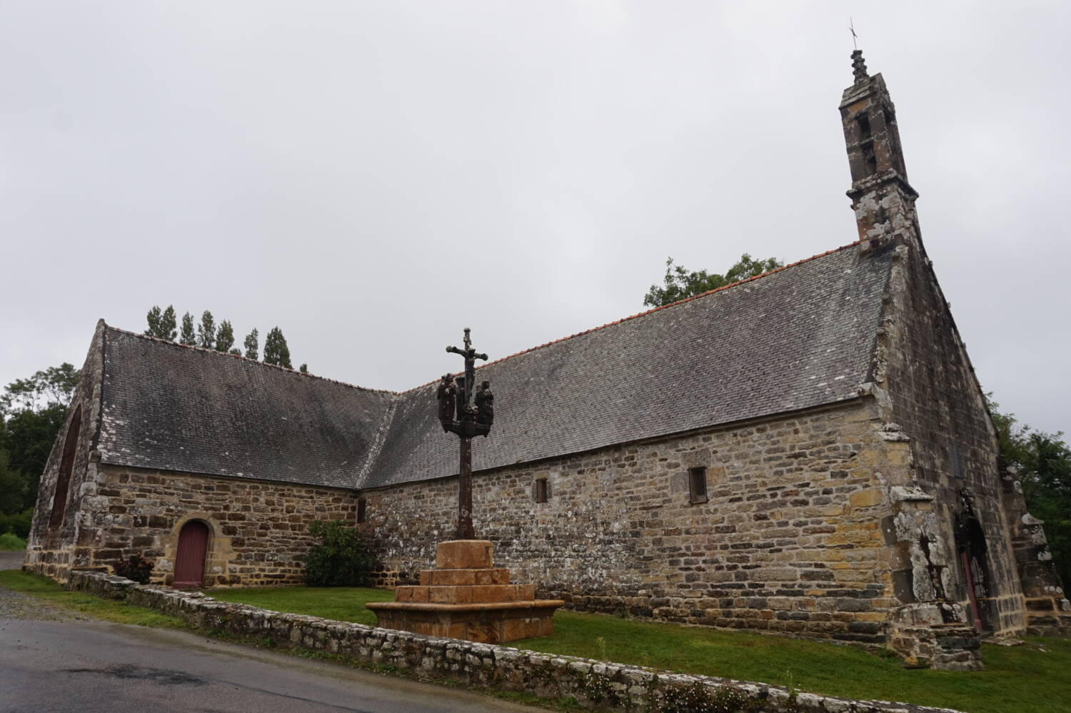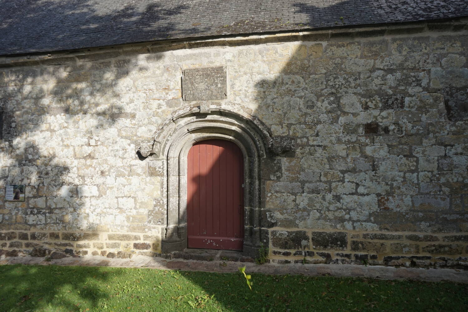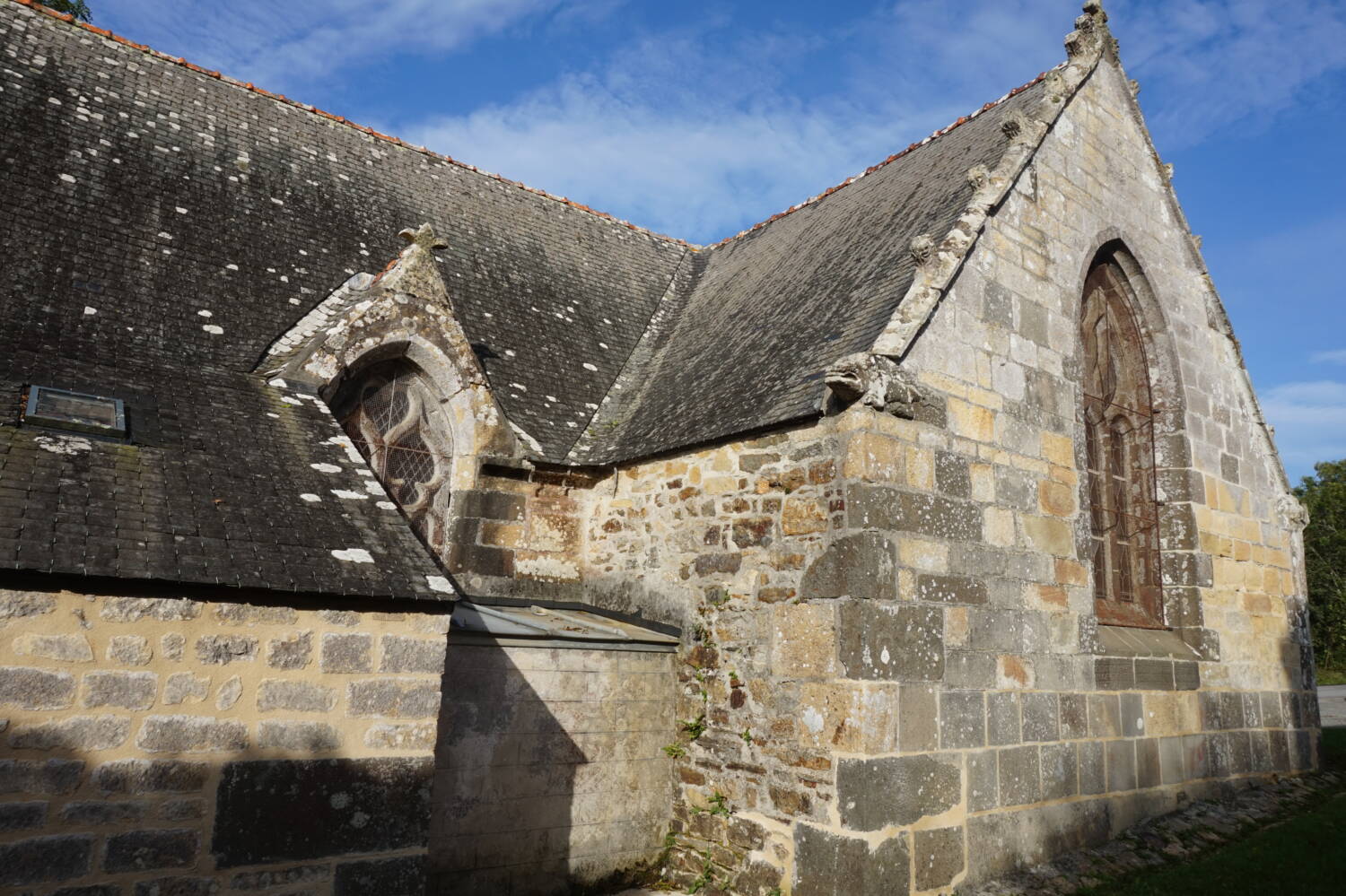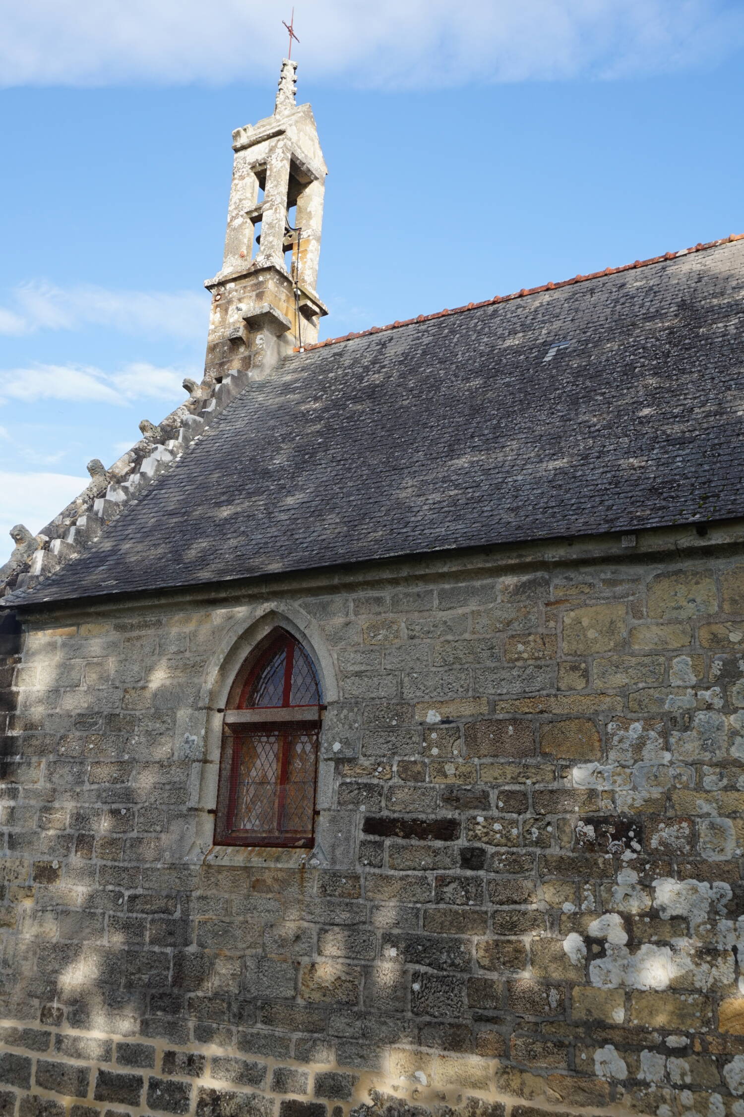 Le pignon ouest est percé d’une porte en anse de panier, surmontée d’une accolade Renaissance à crossettes. Aux angles, apparaissent deux contreforts à consoles renversées. Le petit campanile est de la fin de la période gothique.