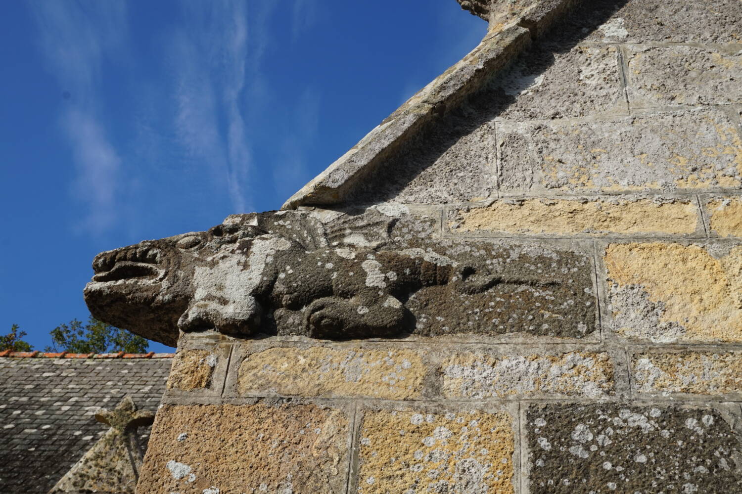 Dans le transept nord, on trouve une poutre richement sculptée, et sur la sablière du transept méridional on a représenté des sujets bizarres : petits génies nus, têtes de dauphin se terminant en feuillage ; un renard joue du biniou devant une poule.