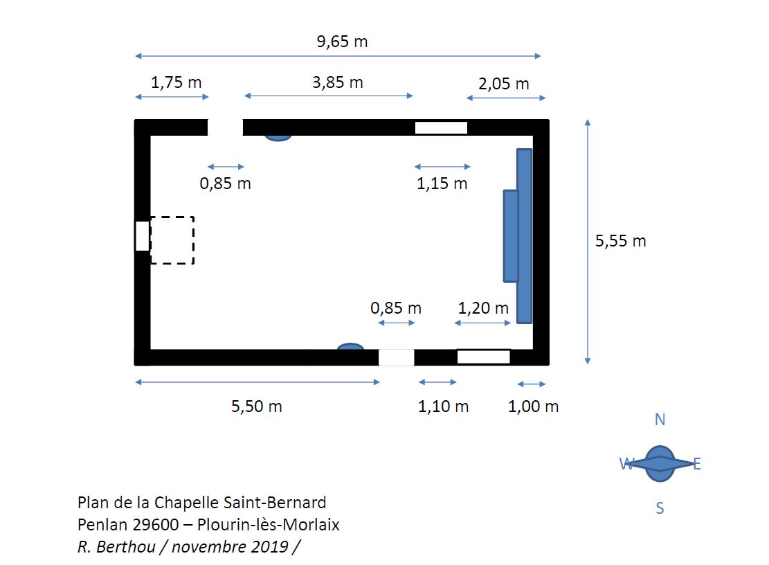 La chapelle Saint-Bernard dépendant du manoir de Penlan est située à l’entrée de l’allée qui y mène, en bordure d’un chemin communal qui dévale vers la vallée du Queffleuth, rivière qui séparait les anciens évêchés de Léon et de Tréguier. Elle se dresse à 4 kms au sud du village de Plourin-lès-Morlaix dans la campagne, en lien avec l’étymologie du lieu (en breton, « pen lann » = l’extrémité de la lande).