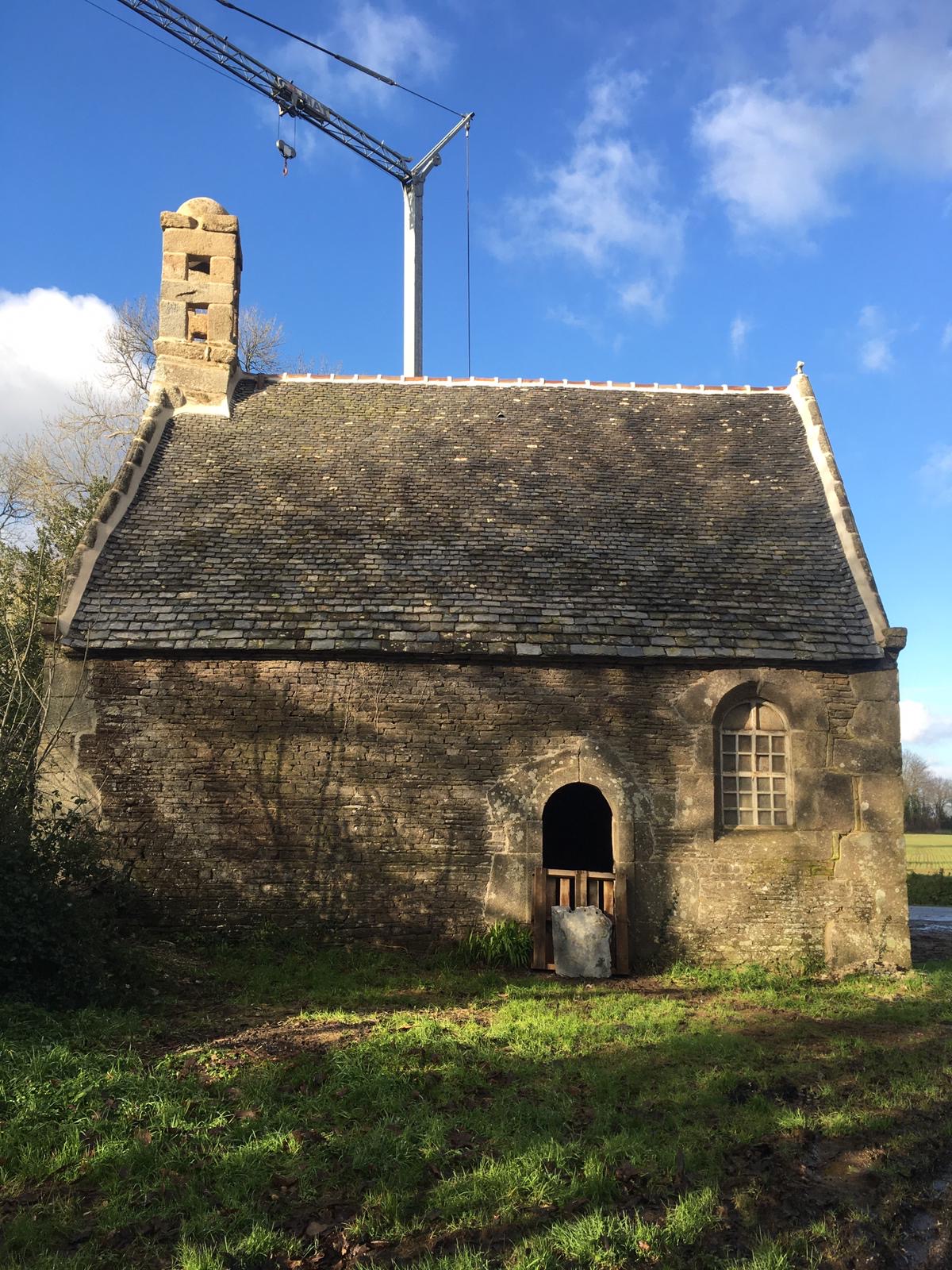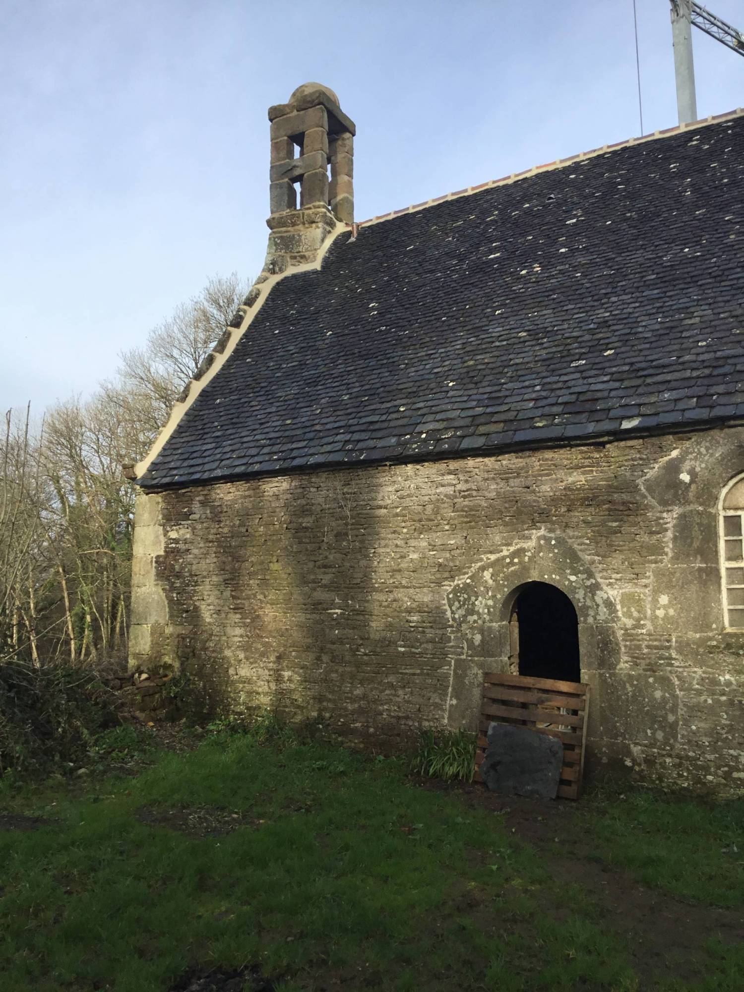 Le plan de cette petite chapelle est rectangulaire et sa toiture à doubles pans en ardoises des Monts d’Arrée repose sur deux pignons massifs est et ouest terminés par une chevronnière sculptée s’appuyant sur des crossettes à talon. Le pignon est est couronné par un clocheton en pierres recouvert en dôme. Celui-ci a dû être démonté, par suite de dégâts infligés à la toiture par la tempête de 1996. On entre dans la chapelle par deux portes ouvrant sur les deux côtés. Le décor intérieur est constitué de deux bénitiers en pierre et d’un maître-autel du XVIIème siècle. Il est surmonté d’une toile représentant l’Annonciation. Ce tableau du XIXème siècle a été mis en place à la suite de la consécration du bâtiment à la Vierge.