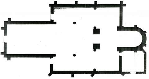 La nef s’éclairait primitivement par quatre fenêtres très étroites qui ont été murées pour faire place à deux grandes fenêtres en arc brisé, mais les baies d’origine sont encore bien visibles. De même, le mur sud du chœur a été percé tardivement d’une baie rectangulaire, alors que la fenêtre d’origine du mur nord a été murée et la fenêtre axiale de l’abside agrandie au XVe ou au XVIe siècle. L’arc triomphal en plein cintre séparant la nef du chœur repose sur de simples impostes chanfreinées.