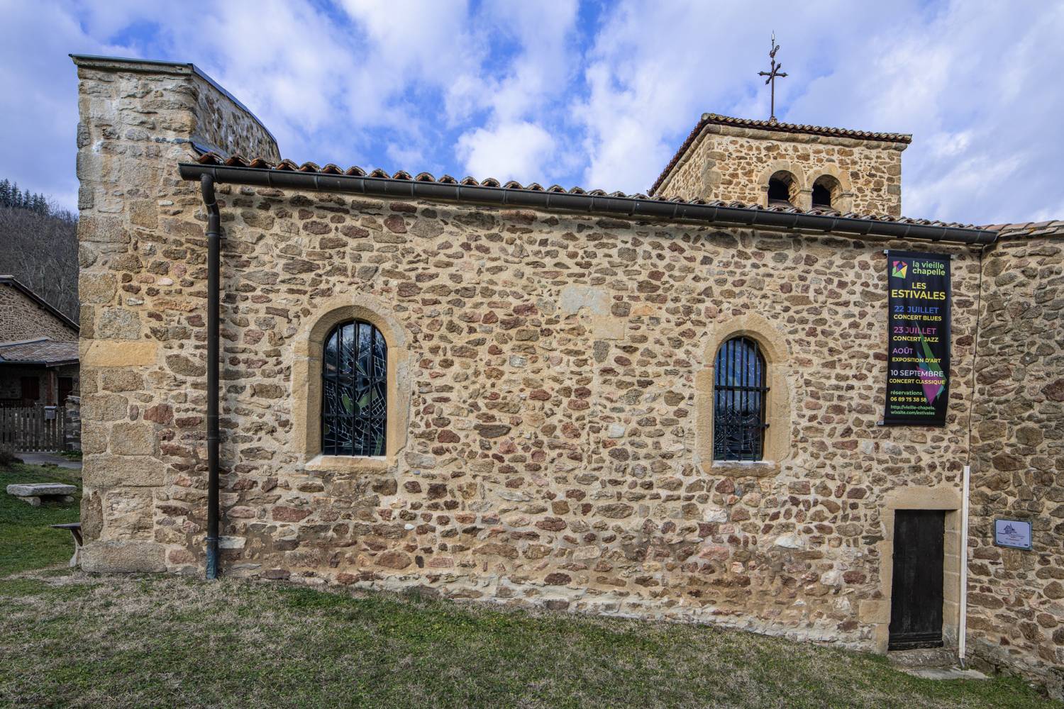 La chapelle Sainte-Marguerite compte parmi le patrimoine architectural du parc régional du Pilat, à l’instar des châteaux de Villars et de Lupé, des chapelles Saint-Sabin et du Mont-Monnet et de la chartreuse de Sainte-Croix-en-Jarez. Ancienne église paroissiale, la chapelle romane Sainte-Marguerite est mentionnée dans le Cartulaire lyonnais en 984. Elle dépendait alors de la seigneurie d ‘Hugues de La Chapelle, neveu de l’archevêque de Vienne. Détruit en partie par les troupes du baron des Adrets lors des Guerres de Religion, puis reconstruit au XVIIe s., cet édifice est abandonné en 1868 au profit d’une nouvelle église plus spacieuse, construite dans le même village, plus bas, au lieu-dit de la Minoterie. Depuis 1983, l’Association pour la sauvegarde de la Vieille Chapelle œuvre pour préserver ce monument. Sa restauration a débuté en 1991. Orientée, bâtie sur un rocher escarpé, cette chapelle se compose d’une nef rectangulaire et d’un chœur à chevet plat voûté sur croisées d ‘ogives. Lors des modifications du XVIIe s., deux chapelles voûtées d’arêtes ont été ajoutées de part et d’autre de la nef, l’une au nord, l’autre au sud. Le clocher s’élève sur la chapelle nord et l’accès au premier étage se fait par une rampe située dans un bâtiment accolé au flanc nord de la nef. Deux baies jumelées sur les faces étroites et une seule baie sur les faces larges, nord et sud, ornent ce clocher. La façade ouest s’ouvre par une porte remaniée. Les fonts baptismaux en pierre, de grandes dimensions, et un Christ en bois peint du XVIIe s., découvert dans les décombres, composent le seul mobilier de ce sanctuaire. La cloche de bronze, actuellement déposée dans la nouvelle église de la Chapelle-Villars, date de 1515 et a été classée en 1964. Pour le drainage des façades nord et sud, et pour la reconstruction des murs de soutènement, la Sauvegarde de l’Art Français a accordé en 1994 une aide de 100 000 F.