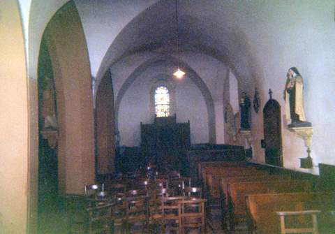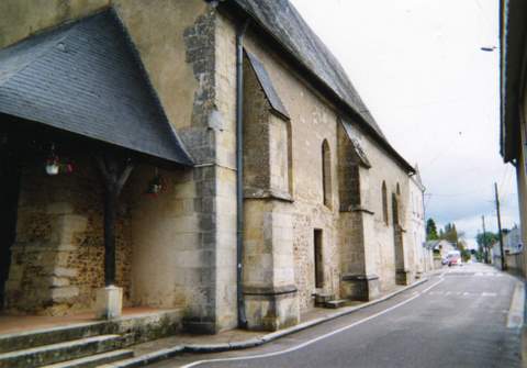 L’église paroissiale dédiée à saint Laurent appartenait aux chanoines de Saint-Martin de Tours. Son plan est très simple : une nef unique en grande partie du XIIe s., reprise au XVIe (ouverture et contreforts), prolongée par un chœur du XIIIe à chevet plat et fenêtre d’axe. Le XIXe siècle (1844-1845) a ajouté un bas-côté vers le nord ouvert par quatre grandes baies sur l’édifice primitif ; ce bas-côté est couvert d’une fausse voûte en brique, alors que la nef et le chœur sont couverts d’une charpente lambrissée à poinçons et entraits contemporains des reprises du XVIe siècle. Un porche de charpente a été bâti à cette époque en avant de la porte romane occidentale ; cette dernière, dont les piédroits ont été modifiés, a gardé ses voussures comportant en alternance deux tores cylindriques et deux rangs d’étoiles. On a regroupé dans les fenêtres du chevet des médaillons et fragments de vitraux du XIIIe siècle. Un autre vitrail des XV-XVIe s. est conservé dans une fenêtre de la nef.