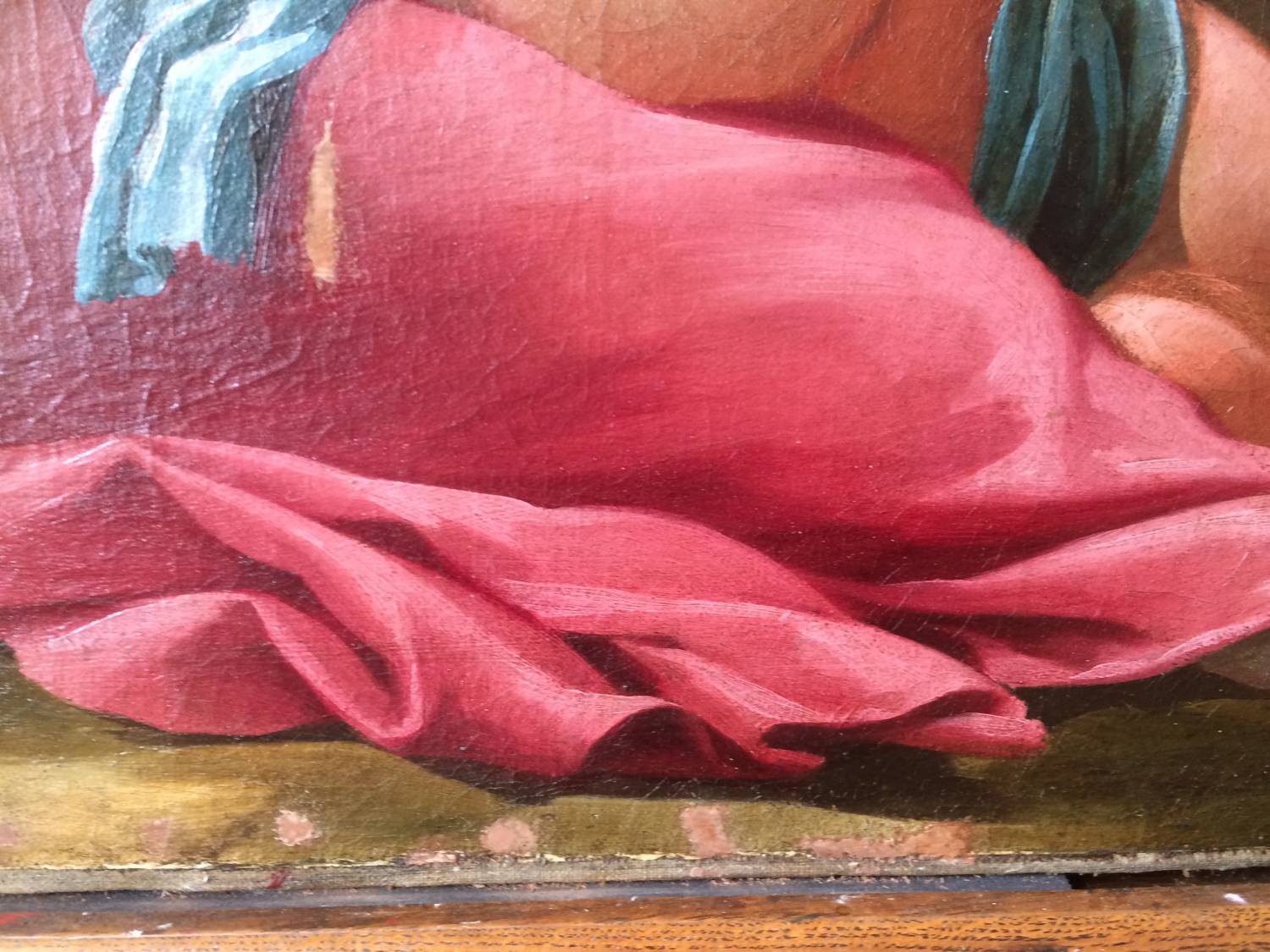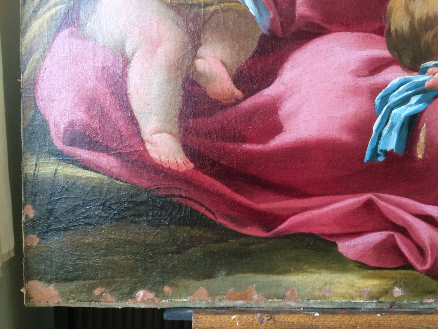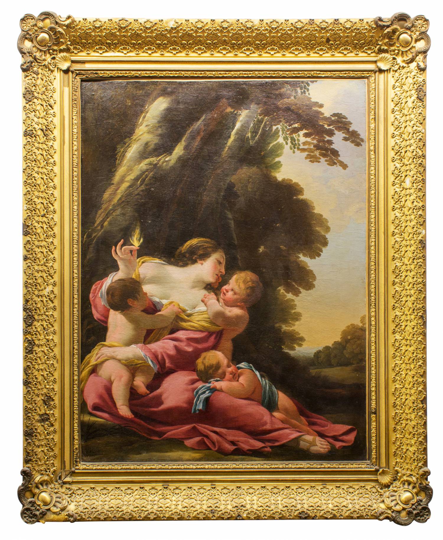 Simon Vouet (1590 – 1649) est le grand représentant de la peinture française de la première moitié du XVIIe siècle. Né à Paris, il voyagea en Italie à partir de 1612 et visita Venise, Gênes, Milan… A Rome, il reçut de nombreuses commandes, notamment pour le cardinal Barberini, futur pape Urbain VIII. Il exécuta une oeuvre, aujourd’hui détruite, pour la basilique Saint-Pierre. Grâce à sa renommée, il fut porté à la tête de l’Académie de Saint-Luc en 1624. A son retour en France en 1627, il jouit d’une très grand popularité et exécuta de nombreuses commandes, pour Louis XIII et Richelieu par exemple. Il dirigea alors un très grand atelier que fréquentèrent de nombreux artistes comme Pierre Mignard, Eustache Le Sueur, Charles Le Brun et André Le Nôtre.