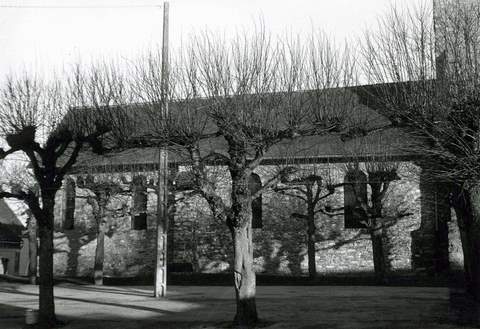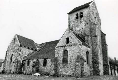 Église paroissiale Saint-Martin. Belle église dont l’ensemble du gros œuvre et la porte d’entrée remontent au xiie siècle. Le portail n’a pas de tympan, mais son archivolte en plein cintre est habilement décorée de bâtons brisés. La municipalité a montré son attachement à ce sanctuaire en y faisant, grâce à un emprunt, pour 80 000 F de travaux. Le curé, qui a l’écrasante tâche de desservir neuf paroisses, nous recommande particulièrement cet édifice, mal réparé au xviie siècle, dont la toiture fait actuellement eau de toutes parts. L’une des photographies jointes à cette notice montre l’état désastreux de la charpente. C’est le type même de l’église rurale constituant une très lourde charge pour une commune comptant moins de deux cent cinquante habitants. En faisant état d’une aide en partie bénévole qui a déjà fait un excellent travail, on nous demande une participation de 35 000 F. Nous n’hésitons pas à donner l’aval le plus favorable à cette demande. Le portail roman mériterait d’être classé parmi les Monuments historiques.