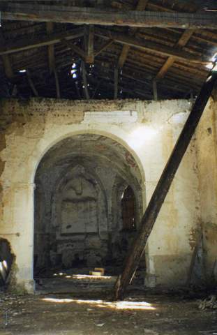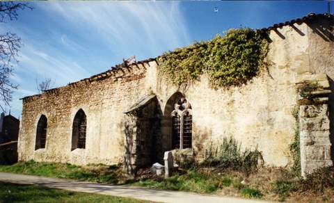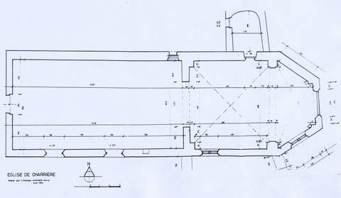 L’origine, Saint-Pierre de Charrière, aujourd’hui simple hameau de la commune de Châteauneuf-de- Galaure, était une dépendance du prieuré clunisien de Saint-Pierre de Manthes. Ce dernier le céda en 1456 aux Cordeliers, déjà fortement implantés dans la région, à Grenoble, Crest, Embrun en 1220, Valence en 1248, Briançon en 1391. L’église, accolée aux bâtiments conventuels, consacrée en 1465, fut incendiée en 1580 et reconstruite vers la fin du XVIe siècle. L’ensemble subsista jusqu’à la Révolution, où il fut vendu comme bien national et les bâtiments transformés en exploitation agricole. Hormis la chapelle, ce qui subsiste aujourd’hui, très mutilé, ne présente pas d’intérêt. Il n’en est pas de même de la chapelle. Bien que très dégradée après deux siècles d’abandon, elle se présente comme un précieux témoin de l’art religieux rural aux XVIe et XVIIe s. dans une région qui n’en a conservé que peu d’exemples. Le plan très simple comprend une nef unique de 16,30 m de longueur sur 9,60 m de largeur. Actuellement découverte cette nef avait un plafond plat en staff dont des restes sont encore en place. Le centre comportait une rosace dont quelques éléments, petites fleurs remarquables, ont été retrouvés sur le sol. L’éclairage est assuré par deux fenêtres en arc brisé percées dans le mur sud. Un arc triomphal sépare cette nef du sanctuaire, composé d’une travée carrée terminée par une abside à trois pans, le tout couvert d’une voûte d’arêtes. Dans la travée droite du chœur, une fenêtre au sud est analogue à celles de la nef, elle a conservé un beau remplage encore très gothique. La fenêtre dans le mur sud-est du chevet paraît appartenir à la même époque, mais le dessin des remplages est différent. Une troisième fenêtre, percée dans le mur oriental, a été obturée lors de l’installation du maître-autel au XVIIe s., mais on la devine sur la paroi extérieure. Ces fenêtres, encore très gothiques d’inspiration, confirment l’importance de Charrière comme rare témoin de cette époque dans la région. Cette importance est confortée par l’étonnant décor peint à l’intérieur du sanctuaire. À lui seul il justifierait la nécessité de sauver le monument. Sur le mur méridional on distingue encore un ou plusieurs épisodes de la vie de saint François d’Assise. Beaucoup plus dégradées, les scènes du mur nord ne sont plus identifiables. Dans ce mur, la porte donnant accès à la sacristie, possède un bel encadrement en pierre avec arc en accolade et écusson orné d’armoiries. Sur les voûtes du chœur se déploient des motifs floraux, de beaux rinceaux décoratifs. Le revers de l’arc triomphal est revêtu de draperies. À l’extérieur, la façade ouest, très dépouillée, est percée d’une porte surmontée d’un arc brisé. Consciente de l’intérêt de l’édifice, la Sauvegarde de l’Art français a accordé 33 000 F en 1999 pour aider la commune à réaliser une première tranche de travaux urgents.