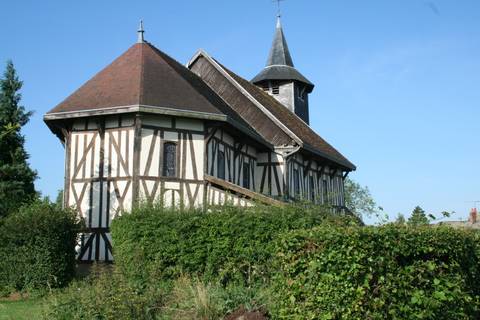 L’église est précédée d’un clocher carré, orné de baies géminées en partie haute, dont la flèche octogonale a sans doute été remaniée.