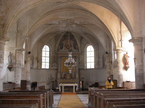 A l’intérieur, la nef et le chœur sont couverts de voûtes d’ogives barlongues, seule réminiscence de l’époque gothique, retombant sur des colonnes engagées à chapiteaux toscans. Les clefs de voûte sont ornées de cartouches. L’installation d’un retable a entraîné l’occultation de la fenêtre axiale. Les fenêtres très larges occupent plus de la moitié des parois de chaque travée et apportent une abondante lumière. L’édifice renferme de nombreux objets mobiliers classés au titre des monuments historiques : Saint Mathieu et l’ange, groupe sculpté du xve s. ; une statue de saint Saturnin (xvie s.) ; un buste de la Vierge (xive s.), provenant de l’ancienne église de Saint-Saturnin ; Saint Augustin foulant aux pieds l’hérésie, tableau du xviie s. ; le retable majeur orné d’un tableau représentant l’Annonciation, copie d’une œuvre détruite du Titien (xviie s.) ; une cloche du xvie siècle.