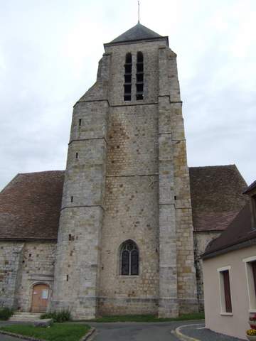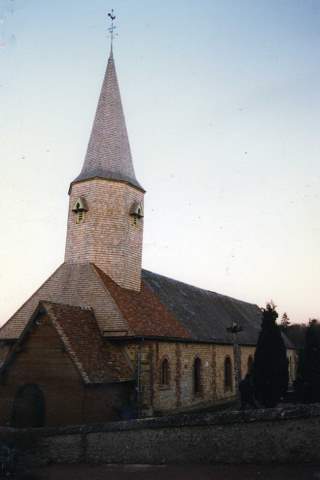 L’édifice des XIIe et XIIIe s. était primitivement composé d’une nef de trois travées, d’un chœur d’une travée droite plus étroite, le tout terminé par une abside semi-circulaire. Un bas-côté a été ajouté au XVIe s. le long du flanc sud, entraînant la percée de grandes arcades et l’obturation des fenêtres hautes de la nef. La troisième travée de ce collatéral sert de base à un puissant clocher soutenu par des contreforts et une tourelle d’escalier à l’angle sud- ouest. La façade occidentale est percée dans l’axe de la nef d’un portail en plein cintre dont la voussure médiane est ornée d’un bâton brisé; au-dessus une petite baie porte le même décor.
