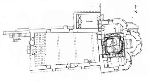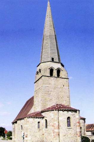 Le clocher, élevé au XIVe s. au-dessus de la croisée du transept, constitue l’attrait principal de l’ensemble. Visible de loin, sa haute flèche de pierre, de plan octogonal, rappelle une série d’autres flèches de même type : Le Theil, Lafeline, Saulcet…