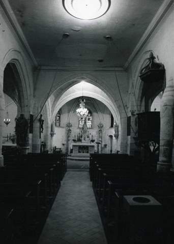 L’église paroissiale construite au XVIe s. et entourée de son cimetière est placée sous le vocable de saint Pierre-aux-Liens. Son plan est en forme de croix latine très ramassée, un large transept de deux travées débordant autour de la nef simplement recouverte d’un plafond. L’abside à trois pans est voûtée en ogives et séparée du transept par un arc en plein cintre soutenu par des colonnes cylindriques engagées.