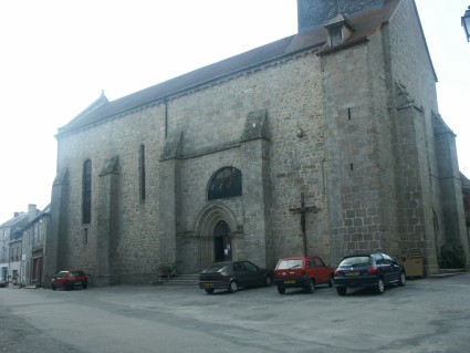 L’édifice comporte quatre travées, la plus à l’est formant chœur à chevet plat ; une chapelle fut ajoutée au sud de la deuxième travée de la nef au XVe siècle. L’ensemble est construit en granit, en moyen appareil régulier pour les pignons, la travée de la porte nord, la tourelle d’escalier menant au clocher, les encadrements des baies et les contreforts, et en moellons hétérogènes pour le reste de la maçonnerie, primitivement enduits, comme en témoignent les quelques vestiges conservés. Comme à l’habitude, dans le gothique rural limousin, les façades sont rythmées, à l’extérieur, par de nombreux contreforts : quatre sur chacun des murs nord et sud, et deux à l’est et à l’ouest. Le pignon occidental est flanqué, au nord-ouest, d’une étroite tourelle d’escalier rectangulaire, couverte en appentis et sommée d’une petite lucarne, qui donne accès au clocher en charpente, composé d’un massif cubique, au-dessus duquel s’élève une flèche octogonale. Le toit de la nef à faible pente est en ardoise. La façade occidentale est percée d’un portail en arc brisé constitué de deux voussures, surmontées par une archivolte dont les extrémités moulurées se terminent en angle droit ; elles reposent sur deux chapiteaux à feuillages enroulés prolongés par des colonnettes reposant sur des bases moulurées de trois tores ; sans doute s’agissait-il de l’accès principal de l’église au XIIIe siècle ; au-dessus du porche, le mur-pignon est orné d’une niche et d’une large fenêtre en plein cintre. La façade sud, partiellement cachée par des habitations adossées, est aujourd’hui inaccessible : outre la chapelle ajoutée au XVe s., contre la deuxième travée, une sacristie a été construite dans la partie basse des deux travées orientales. Cette sacristie, comme en témoignent plusieurs des niches qui l’ornent, remonte sans doute au XVIe ou au XVIIe siècle. La chapelle comporte des contreforts d’angle, tandis que sur son pignon s’ouvrent deux baies en plein cintre de part et d’autre d’un contrefort médian. Le chevet de l’édifice est, comme souvent dans ce type de construction, le plus simple, avec sa haute baie axiale cintrée, surmontée par une ouverture donnant sur les combles et une horloge. L’entrée principale de l’église se fait, sur la façade nord, par un portail percé dans la deuxième travée, dans un léger avant-corps, entre deux contreforts. Il est constitué d’un arc brisé de trois voussures à tores, surmontées d’une archivolte, qui reposent sur une frise-chapiteaux à coquilles et à crochets. Au-dessus de ce portail, se trouve une large fenêtre semi-circulaire, dégagée en 1971, par M. André, architecte des Bâtiments de France.