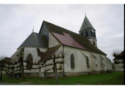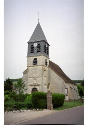 L’édifice présente un plan rectangulaire. Il se compose d’une nef à un vaisseau central, encadré de collatéraux de même hauteur. La nef se termine, à l’est, par une abside à cinq pans. Un clocher-porche s’adosse contre la façade occidentale. Il s’élève sur trois niveaux séparés par des cordons horizontaux ; il est construit, comme le reste de l’église, en pierre crayeuse. Sur ses angles, deux contreforts à retrait montent jusqu’au bandeau du deuxième niveau, dont une petite baie cintrée éclaire chacune des trois faces. Un carré de charpente, formant chambre des cloches, surmonte l’ensemble. Recouvert d’ardoises depuis 1782, il est ajouré sur chaque face par deux baies cintrées munies d’abat-son. Le tout est couronné d’une toiture pyramidale en ardoise. Sous le bandeau du deuxième niveau, la face sud présente les vestiges d’un cadran solaire.