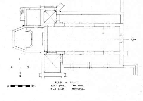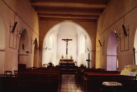 La construction de cet édifice s’est étendue sur plusieurs siècles. La nef de quatre travées, non voûtée, communique avec les bas-côtés par de grandes arcades brisées dont la retombée s’effectue sur des impostes sans décor. Ces dernières ne se prolongent pas sur la face des piliers carrés tournée vers la nef. Cette partie de l’église peut être attribuée à la fin du xiie s. ou au début du xiiie. Le collatéral sud, construit dans le même grès que la nef, présente un décrochement sur la façade occidentale qui suggère une construction ou une reconstruction quelque peu postérieure. Le bas-côté nord, par sa maçonnerie de pierres blanches, se distingue franchement et ne peut être antérieur au xviie s.