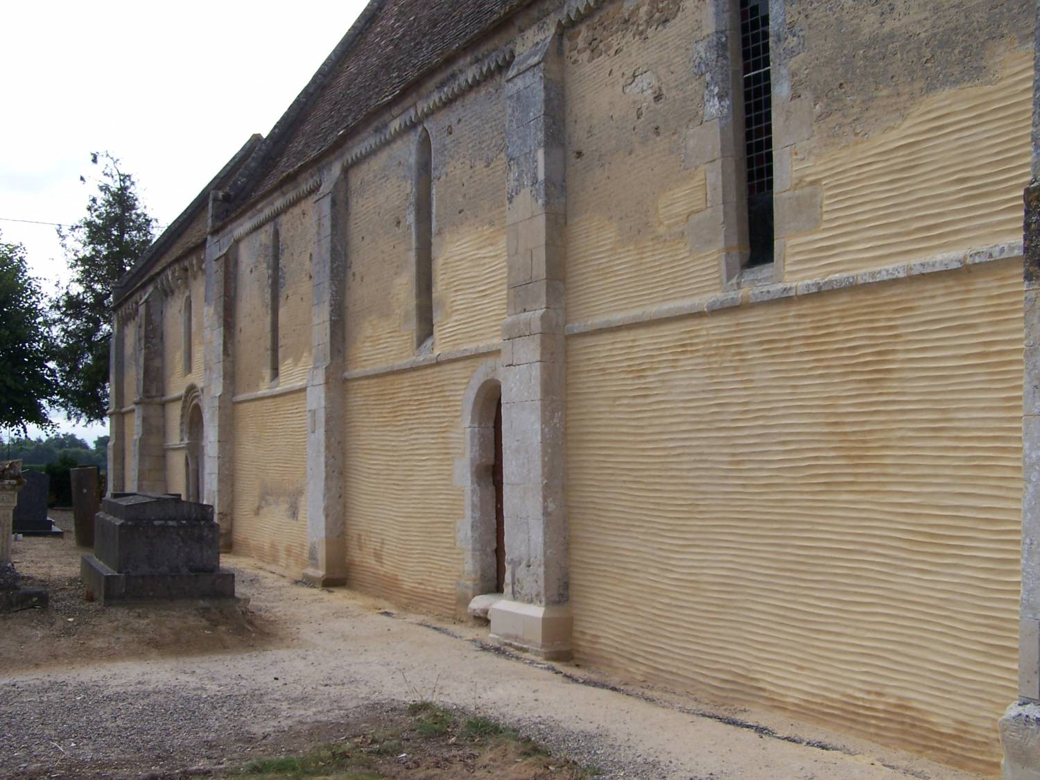 La partie la plus ancienne, le chœur, est du XIIe siècle. La nef a été remaniée au XIIIe s. , avec l’ajout d’une corniche décorée en dents de scie, tandis que ses fenêtres étroites étaient allongées en lancettes à l’extérieur.