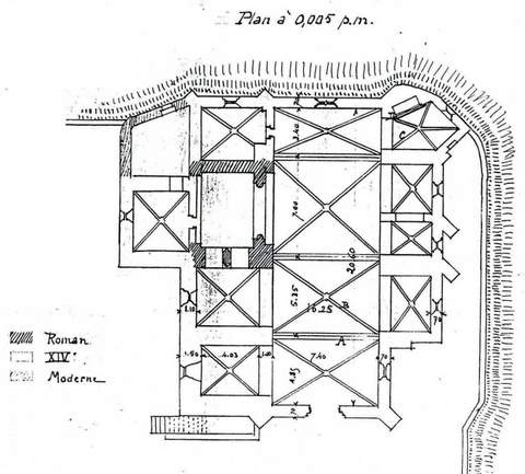 Située au bord de la falaise, l’église Saint-Honorat possède encore quelques vestiges architecturaux qui attestent son origine romane. Cependant l’essentiel de l’édifice est le résultat des nombreuses modifications apportées au cours du xive s. L’église, inscrite à l’inventaire supplémentaire depuis le 6 mars 1925, est de dimension honorable (22 m de long) et présente un plan assez complexe : une nef de quatre travées, voûtées d’ogives, aux dimensions irrégulières, qui se termine par un chevet plat dont le mur est percé d’une fenêtre à deux lancettes. La nef est flanquée, de part et d’autre, de chapelles latérales de structures diversifiées qui ont dû être ajoutées au fil du temps.