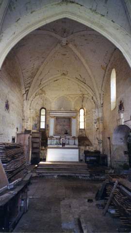 l’intérieur, les deux travées sont couvertes de voûtes sur croisées d’ogives au profil bombé.