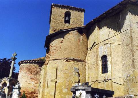 La silhouette du clocher passerait pour toulousaine s’il n’avait été coiffé, lors de sa reconstruction en 1854, d’une courte flèche de charpente. On pénètre dans l’église par une grande porte en arc brisé surmontée d’un décor troubadour. À l’intérieur, la nef communique largement avec les chapelles latérales par des arcades reposant sur des colonnes, par l’intermédiaire d’un chapiteau annulaire. Cette disposition date, elle aussi, du siècle dernier. De manière très inhabituelle, une Mise au tombeau a été placée sur le pan droit du mur de l’abside : il est vraisemblable que de nombreux éléments de ce groupe sculpté appartenaient, avant le XIXe s., à une chapelle latérale. Un oculus, ouvert dans la partie haute du chevet donne un peu de lumière à cette partie de l’église, tandis que, devant le groupe sculpté, était placé un autel néo-Renaissance en 1878. Pour achever cette présentation, le mur du chevet fut alors peint d’une Annonciation afin de compléter quelques fragments de peinture murale, plus anciens.