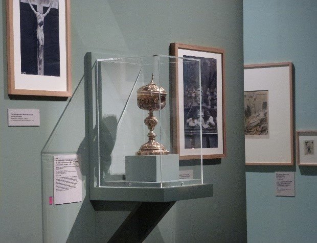 Le ciboire est aujourd’hui conservé dans une simple vitrine fabriquée vers 1915, avec les deux portes du tabernacle, percées de trous au niveau de la serrure, l’agneau en bronze qui décorait la porte forte, et le voile de calice (ou pavillon).