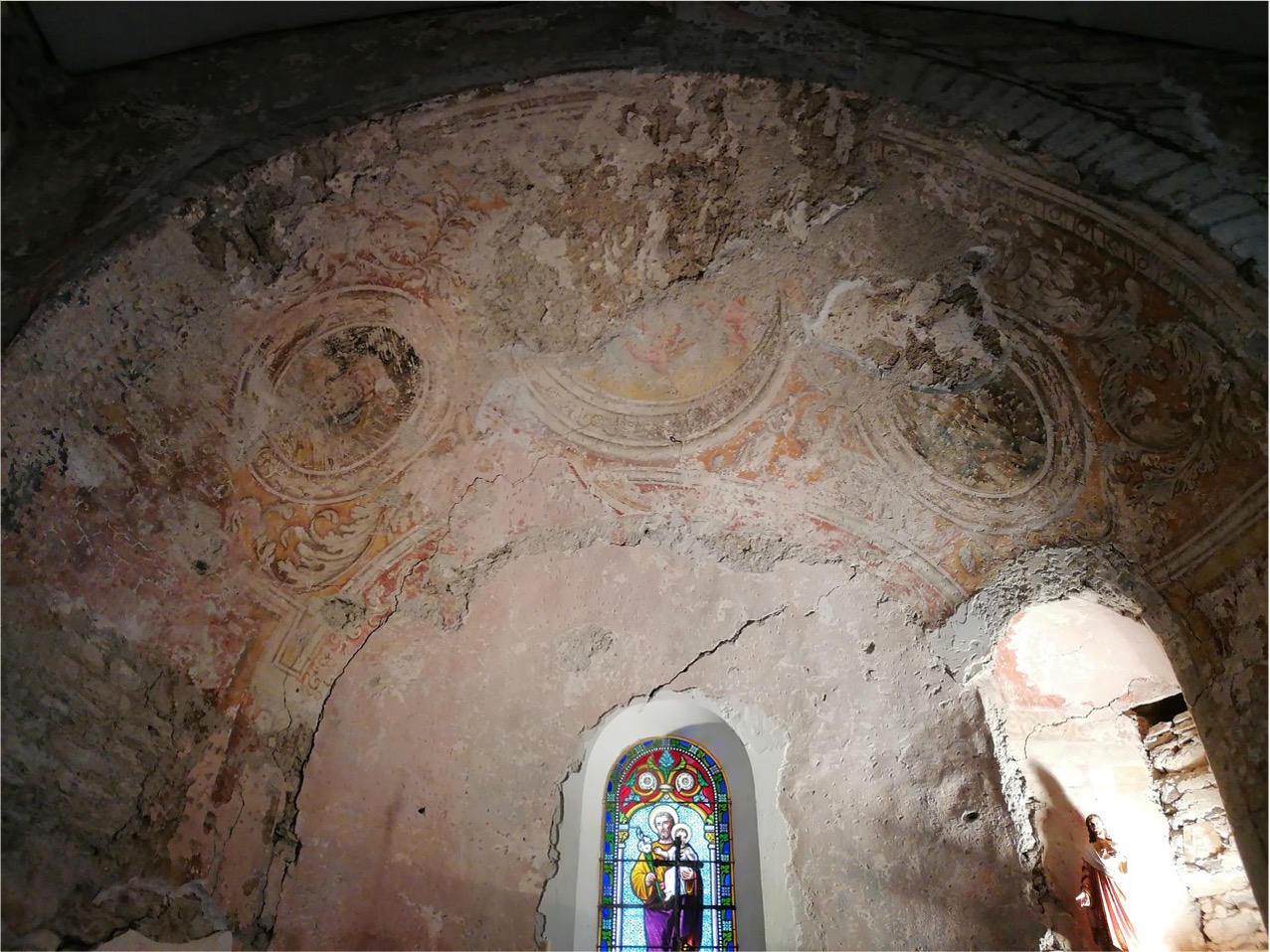 Les fresques du coeur (en mauvais état) semblent dater de la restauration de 1659, de même que les autels en marbre rouge. L’autel de droite abrite 5 croix de St André et un bathysphère lui aussi en marbre noir.