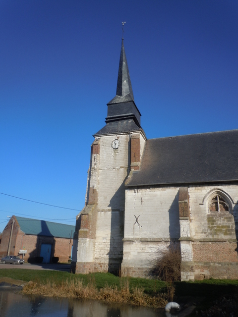 L’Église Saint-Nicolas a donc été reconstruite à la fin du XVe siècle. C’est un édifice en calcaire local, sur un soubassement en grès ; quelques inclusions de briques, notamment dans les contreforts, soulignent des réparations sommaires. L’édifice comporte une seule nef rectangulaire terminée par un chevet à trois pans. Le clocher carré domine l’entrée principale de la façade ouest. Il est constitué d’un socle en pierre conforté par de solides contreforts appareillés. Une charpente en bois qui abrite la chambre des cloches est partiellement recouverte d’une protection en ardoise.
