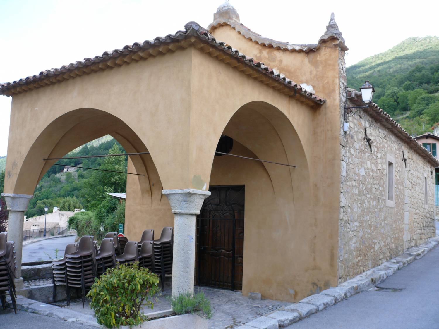 Ce village perché au-dessus de la vallée de la Tinée était jadis un fief des Thorame-Glandevès, confisqué par la maison de Savoie en 1389. L’église, donnée à l’évêque de Nice en 1066, était la seule collégiale du diocèse, attestée dès 1200 et perpétuée jusqu’en 1793. Le chevet et le clocher de la fin du xie s. subsistent encore. Aux limites de la paroisse se remarquent la chapelle Saint-Michel et la chapelle Saint-Antoine, toutes deux ornées de peintures murales du début du xvie s. et de la fin du xve s.La chapelle des Pénitents Noirs, dans le village, complète cet ensemble. Elle a été élevée pour la Confraternité de la Miséricorde, à la suite d’un legs de Jacques Saramandi, dont le testament, daté du 23 décembre 1619, fut reçu par le notaire Ingigliardi. Sa construction peut se situer entre 1620 et 1630. La première moitié du xviie s. fut la grande époque de création des confréries de Pénitents en Provence et dans le Comté de Nice. Malgré sa date, l’édifice se conforme à un parti traditionnel : petit vaisseau suivi d’un chœur rectangulaire légèrement plus étroit, le tout couvert d’une voûte en berceau brisé. On notera aussi l’aspect retardataire du petit porche établi en avant de la façade, avec des supports identiques à ceux que l’on faisait au xvie s. La chapelle a subi plusieurs reprises, notamment en juillet 1836.La Sauvegarde de l’Art français a contribué à la mise hors d’eau en accordant une subvention de 40 000 F (comité du 24 octobre 1985). Son réaménagement intérieur a permis d’en faire un dépôt d’objets d’art religieux autour du beau retable du xviie s. qui subsistait au fond du chœur.