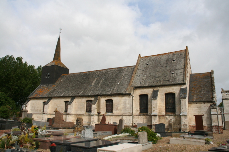 Église Saint-Martin. Saccagé et incendié par les troupes lors du siège de Thérouanne, en 1553, le village a été reconstruit sur le plateau, autour d’un vaste espace quadrangulaire, dénommé le Rietz. Élevée sur le côté de cette place enherbée, près d’une chapelle funéraire du XIXe s., l’église Saint-Martin est un édifice modeste, construit dans la pierre crayeuse du pays, consistant en une nef couverte d’un comble à deux versants, prolongée par un chœur plus étroit, mais doté d’un comble plus élevé, et par une petite sacristie. Les soubassements sont en briques, de même que les épis qui renforcent les pignons des murs.