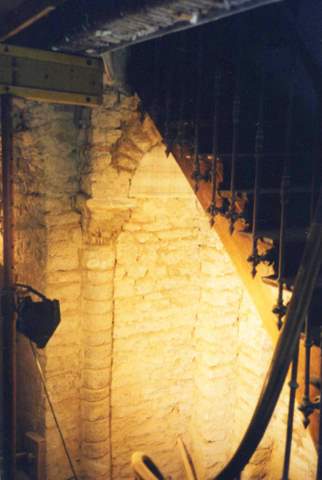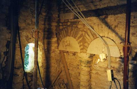 Si les parements extérieurs de l’édifice sont totalement occultés par l’architecture de la villa, la façade ouest, visible sur la gravure, a cependant retrouvé ses percements : une porte du XVe s. avec son linteau en accolade et deux petites fenêtres en plein cintre, placées assez haut dans la façade, sont de nouveau lisibles à l’extérieur. Le mur de cette façade, construit plus tardivement, n’est pas liaisonné avec les murs latéraux de la chapelle. Il a peut être été édifié après la disparition d’une partie occidentale dont l’existence reste hypothétique. Le mur oriental et les murs latéraux nord et sud correspondent à une première campagne que l’on peut attribuer au XIe s., en tout cas avant 1077, date de la première mention écrite de cette église. Le mur oriental est orné de trois arcs : l’arc central, très développé, abrite une grande baie en plein cintre fortement ébrasée, il est cantonné par deux arcs plus étroits. Les trois arcs retombent sur des colonnes engagées très élancées (près de 3,30 m). Elles sont munies de chapiteaux sculptés à tailloir et possèdent des bases attiques très frustes, reposant sur une plinthe continue qui fait le tour de la chapelle. Les chapiteaux ont une facture assez archaïque, leur corbeille est ornée de feuilles et de volutes incisées plus que sculptées. Dans la première travée, quatre forts poteaux à aisseliers soutiennent le clocher. La charpente en berceau lambrissé, avec sablières et entraits, vient prendre appui sur une série de corbeaux sculptés (décor de feuillage), eux-mêmes portés par des colonnettes engagées reposant, à mi-hauteur, sur des culs de-lampe. Un arc diaphragme sépare la nef du chœur, à voûte lambrissée simple. Les vitraux datent du XIXe s. (saint Louis, sainte Barbe, saint Jean-Baptiste …).