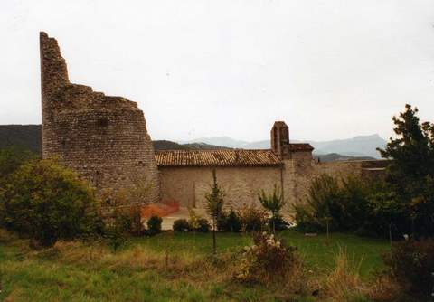 Église Saint-Pierre. Au pied du Vercors, le site fortifié domine la vallée de la Sye, petit affluent de la Drôme. Le vieux village, son château, son église et ses maisons ont été désertés par les habitants après la Seconde Guerre mondiale. En 1964, le seul habitant était un vieux berger ; vingt ans plus tard les habitants fondent l’Association des Amis du Vieux Cobonne ». En dix années, les remparts, le donjon, la fontaine du centre, le four banal sont réparés ainsi qu’une vingtaine de maisons de nouveau habitées. Il reste à terminer les travaux de l’église. Saint-Pierre, paroisse connue dès 1275, dépendait du prieuré voisin de Saint-Pierre-de-Gigors. Henri Desaye, conservateur du musée de Die, a bien résumé son histoire. Dans la première moitié du XIIe s., on bâtit l’édifice. Lors des troubles du XIVe s., pour fortifier le village, le mur nord de l’église est utilisé comme courtine du rempart. L’hypothèse de H. Desaye est que pour ériger le donjon, l’église a été amputée de son transept ; elle aurait alors été fermée à l’est par un gros mur dans l’épaisseur duquel un étroit sanctuaire aurait été aménagé. Cet état est décrit dans une visite épiscopale en 1644. À l’extérieur, les murs gardent les traces de leur parement en petits moellons calcaires à joints fins, disposés en assises régulières. Les contreforts en talus sont postérieurs. Dans la façade, débarrassée de son crépi de ciment, s’ouvrent la seule fenêtre romane authentique et une porte qui semble remonter au XVe ou XVIe siècle. À l’intérieur, les trois travées de la nef sont voûtées en berceau ; les arcs doubleaux retombent sur des pilastres de plan rectiligne ; des arcs de décharge en plein cintre rythment les murs gouttereaux. En 1998 les travaux comportaient la réfection complète de la toiture, la reprise des maçonneries extérieures et des enduits intérieurs. Le décapage de ces derniers a fait apparaître des peintures murales (XVe s. ?) sur la voûte, les doubleaux et dans le chœur. Au revers de la porte occidentale, le tracé de l’arc du portail roman, caché par une maçonnerie, a été mis au jour. Le mobilier conservé comprend un bénitier creusé dans un chapiteau roman, une peinture du XVIIe s. (en cours de restauration) représentant un saint évêque et une cloche classée Monument historique. La Sauvegarde de l’Art français a donné 45 000 F pour la réfection complète de la couverture, la reprise de quelques maçonneries extérieures et la restauration des enduits intérieurs.