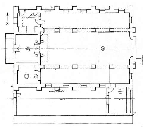 L’édifice se présente sous l’aspect d’une bâtisse rectangulaire de moyenne dimension (25 x 15 m), sous une vaste toiture à deux pans. Une tour formant clocher surmonte l’entrée. La nef se compose de trois vaisseaux, séparés par une série de quatre piles rectangulaires à impostes ; l’élévation ne comporte qu’un seul niveau, celui des grandes arcades en plein cintre, le vaisseau central étant couvert d’un plafond assez bas. Le chevet ne se signale par aucun traitement architectural particulier, si ce n’est un léger empattement du mur oriental.