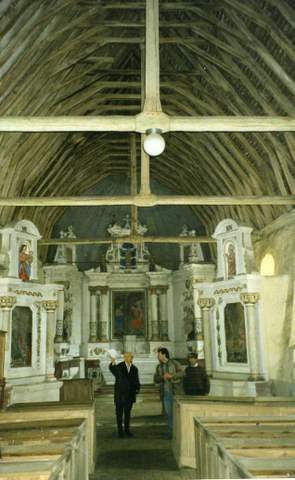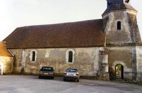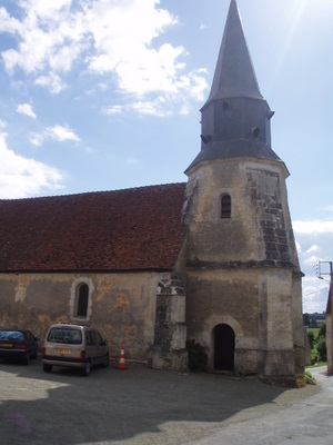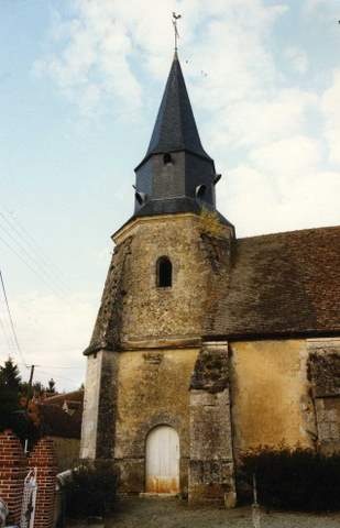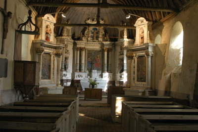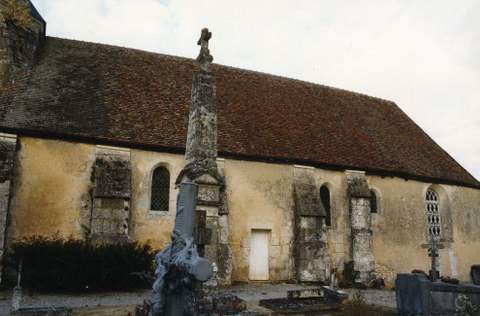 L’église paroissiale de Comblot, placée sous le vocable de saint Hilaire, constitue un ensemble original, sur les bords de l’Huisne, et son décor intérieur retient l’attention par l’ampleur de son programme en regard de la modestie extérieure du bâtiment. De sa construction à l’époque romane, il subsiste quelques vestiges, comme la trace d’une ouverture murée ou le tracé des murs gouttereaux de la nef. L’église est, il est vrai, bien mentionnée dans le cartulaire de l’abbaye Saint-Denis de Nogent-le-Rotrou comme ayant été donnée à cette dernière, en 1223, par le seigneur du lieu, Robert de Comblot. Elle fit l’objet d’une reprise très importante au XVIe siècle. C’est de cette époque que date en effet la charpente dans son volume général. Au siècle suivant, les campagnes de travaux portèrent sur la reconstruction du massif occidental. Des réparations sont signalées en 1733 et 1824. La sacristie est un appendice du XIXe siècle. L’église se présente sous la forme d’un vaisseau unique se terminant par une abside semi-circulaire; elle est précédée à l’ouest par un clocher-porche; une sacristie a été ajoutée sur le flanc nord. Construite en moellons, l’église est couverte d’une toiture de tuiles, à l’exception de la couverture d’ardoises du clocher ; d’épais contreforts scandent sa face sud. L’irrégularité des ouvertures prouve la périodicité des interventions. Original par sa structure, le clocher-porche, qui repose sur une base carrée, adopte un plan octogonal au premier niveau; épaulé par quatre puissants contreforts d’angle, il est couronné d’un clocher couvert d’ardoises, de plan également octogonal. Une élégante corniche de pierre de taille le ceinture. À l’intérieur, l’église est couverte d’une voûte lambrissée qui, par son profil et la structure de ses entraits, évoque les chantiers du XVIe s. ; la différence des moulurations révèle cependant plusieurs époques d’intervention ou de réutilisation des matériaux ; le lambris, en très mauvais état de conservation, a été refait au XIXe s., à l’exception de la partie qui couvre le chœur, plus ancienne. Mais c’est davantage par l’ensemble du décor monumental que le regard est attiré. Le maître-autel principal, de pierre polychrome, est accompagné de deux parties en retour, à niches, qui, par leur plan en biais, épousent l’abside. Ce retable monumental, du XVIIe s., révèle une composition savante. L’ensemble de l’abside est orné d’un maître-autel dans la partie centrale et de retours sur les pans coupés. Des colonnes cannelées, simples sur les côtés, jumelées dans la partie centrale, scandent l’ensemble. Le tableau du maître-autel représente une Annonciation. Corniche saillante, large entablement, frontons triangulaires brisés des côtés accentuant l’élévation du large fronton central conçu lui-même avec science, avec sa niche, ses volutes, ses colonnes et son couronnement, frontons à trumeaux et pyramides sur les parties latérales concourent à une œuvre de qualité. Les niches du registre inférieur sont occupées par deux statues, l’une tardive, du XIXe s., d’un Sacré-Cœur, l’autre, plus ancienne représentant un saint Sébastien. L’entrée du chœur lui-même est en quelque sorte fermée par des autels latéraux, de pierre également, mais dont la composition plus tardive permet de dater leur commande du XVIIIe siècle. Dans ces retables figurent au-dessus de l’autel de gauche une Descente de croix et de celui de droite une Mise au tombeau ; des niches ornées de statues, la Vierge à gauche, saint Nicolas à droite, couronnent l’ensemble. Le mauvais état des soubassements et des glacis des contreforts imposait une reprise des maçonneries extérieures ; la charpente du chevet exerçait des poussées sur les murs tandis que la voûte lambrissée de la nef présentait un réel danger en raison du risque de chute des lattes. Pour la restauration de la voûte dont sa dépose et pour le drainage de l’édifice avec reprise des maçonnerie dans leur soubassement, la Sauvegarde de l’Art français a accordé une subvention de 60 000 F en 1998.