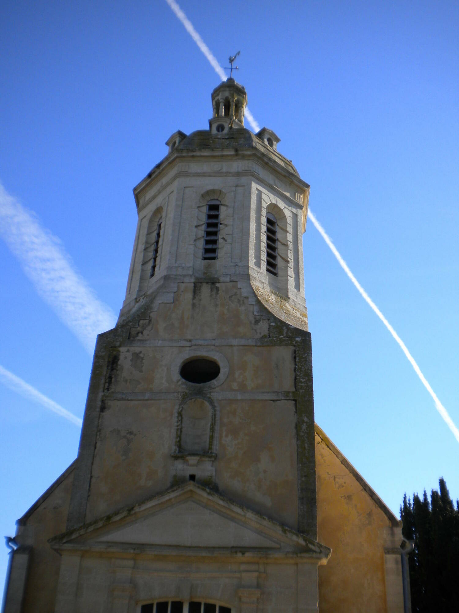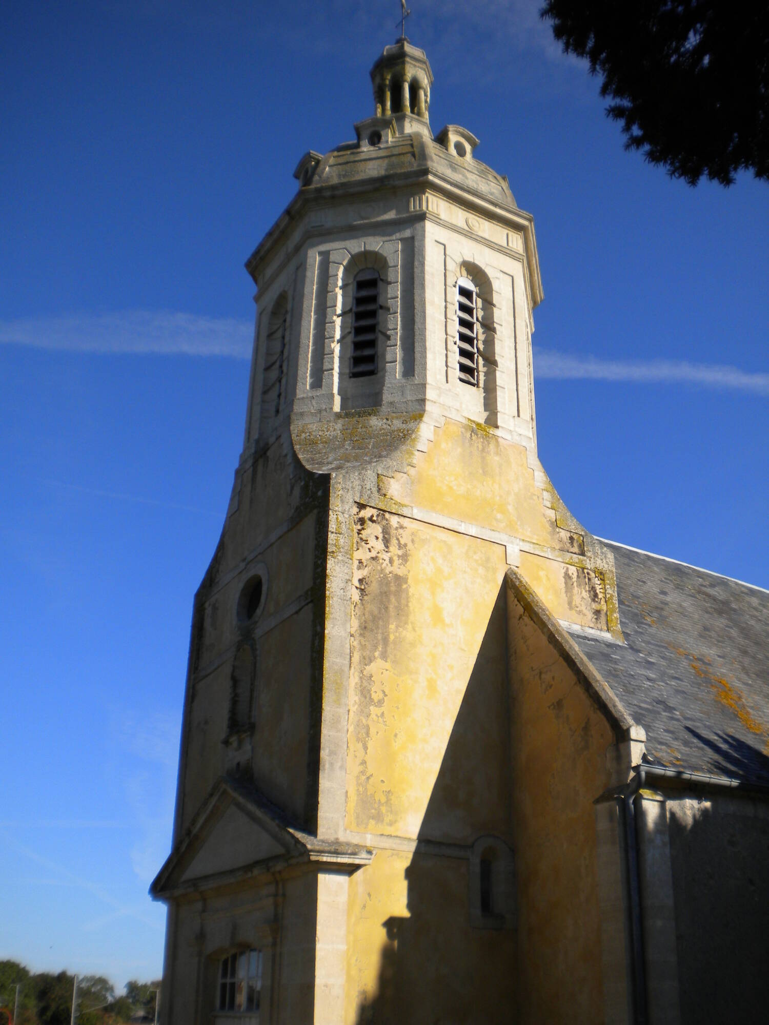 La tour-clocher actuelle fut élevée en 1741 par les paroissiens. De base carrée, elle présente un portail surmonté d’un fronton triangulaire reposant sur deux pilastres d’ordre toscan. Elle évolue ensuite en une structure octogonale, couronnée d’un lanternon soutenu par huit colonnettes. Ce lanternon, de style Renaissance, est un petit édifice circulaire percé d’ouvertures, qui surmonte le dôme. Il s’inspire de celui que l’architecte Moussard réalisa en 1714 sur la tour de croisée de la cathédrale de Bayeux et qui servit de modèle à plusieurs clochers de la région, dont celui de Condé-sur-Seulles.