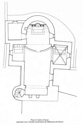 Enfin, on ne peut franchir la porte de l’église sans contempler, au-dessus de la porte du XVe s., une surprenante peinture murale représentant un bateau à voiles (la barque de saint Pierre) accompagnée des dates des trois réfections les plus récentes de l’édifice : 1606, 1879 (clocher, enduits), 1930… Il faudrait ajouter celle de 2002, année de l’achèvement des travaux de restauration, à laquelle a pris part de façon compétente et décisive l’association des Amis d’Aunac créée en 1999.