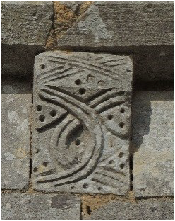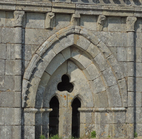 Une petite porte basse à arc monolithe surbaissé est accolée au deuxième contrefort Sud de la nef.